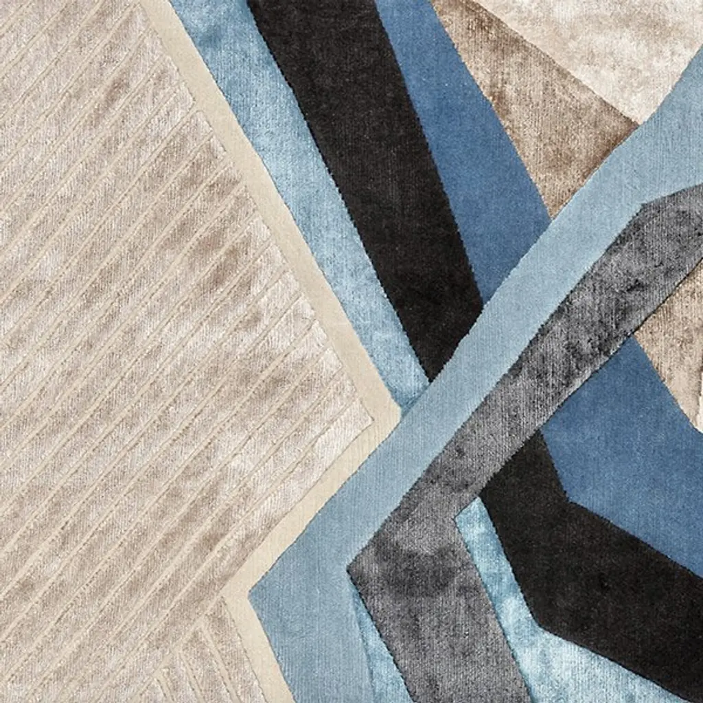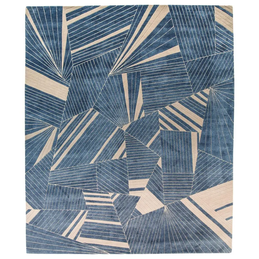Add an abstract accent to interiors with the bold, layered character of the Blaze Area Rug from Illulian. An intersecting assembly of sharp-angled shapes designed by Aquilialberg Architects, it starts with a series of blue-hued inner forms, layered atop each other and set within a linear-patterned and lighter outer set of triangular shapes, fashioned from a blend of wool and silk for a soft, comfortable character.