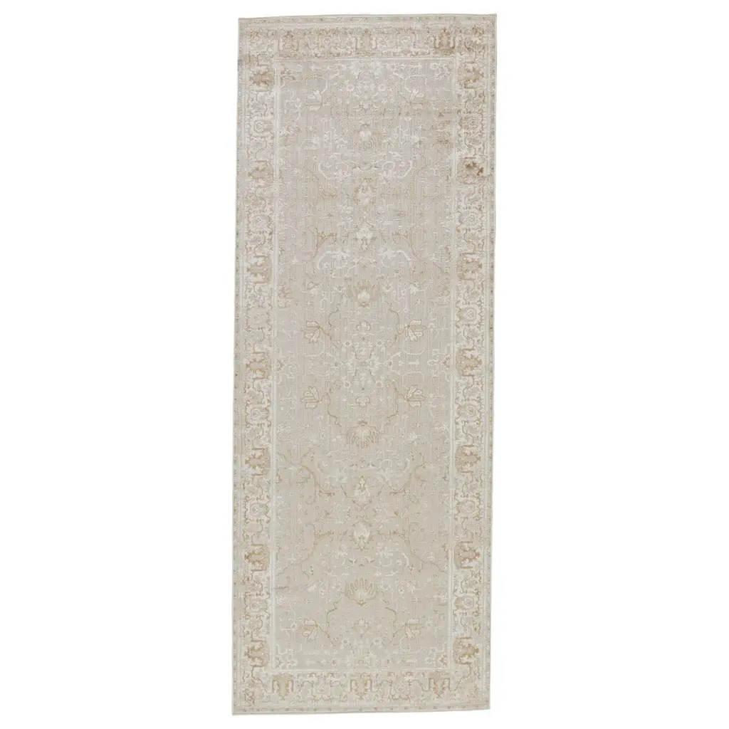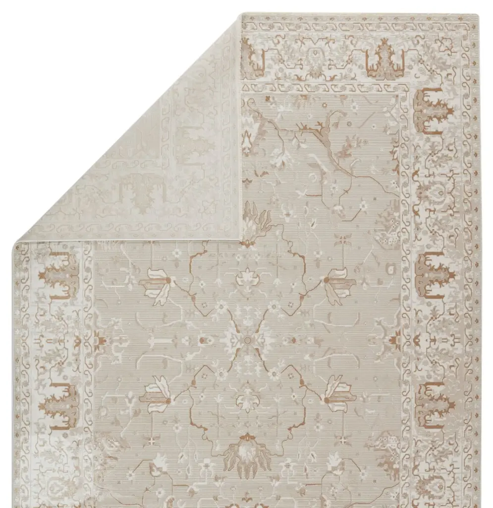 The stunning Blaze collection captures the elegance of neutral, vintage-inspired patterns and melds Old World aesthetics with an updated and luxurious vibe. The Blaze rug boasts an ornate vine motif in tones of gray, gold, white, and light taupe. Soft and lustrous, this chameleon-like design emulates the timeless style of a Turkish hand-knotted rug, but in an accessible polyester and viscose power-loomed quality.