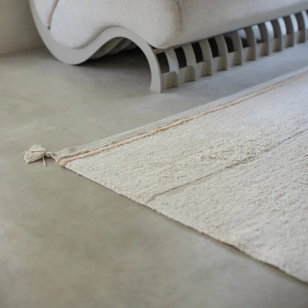 The Bloom Washable Rug from Lorena Canals is made from sustainably-sourced RugCycled yarns and undyed natural cotton, providing a durable and eco-friendly addition to your home. Its unique design features a mix of pile heights and contrasting color lines, creating a textured surface that adds a touch of sophistication to any room. Machine washable, this rug is easy to clean and with care will last for many years of comfort. Highlights