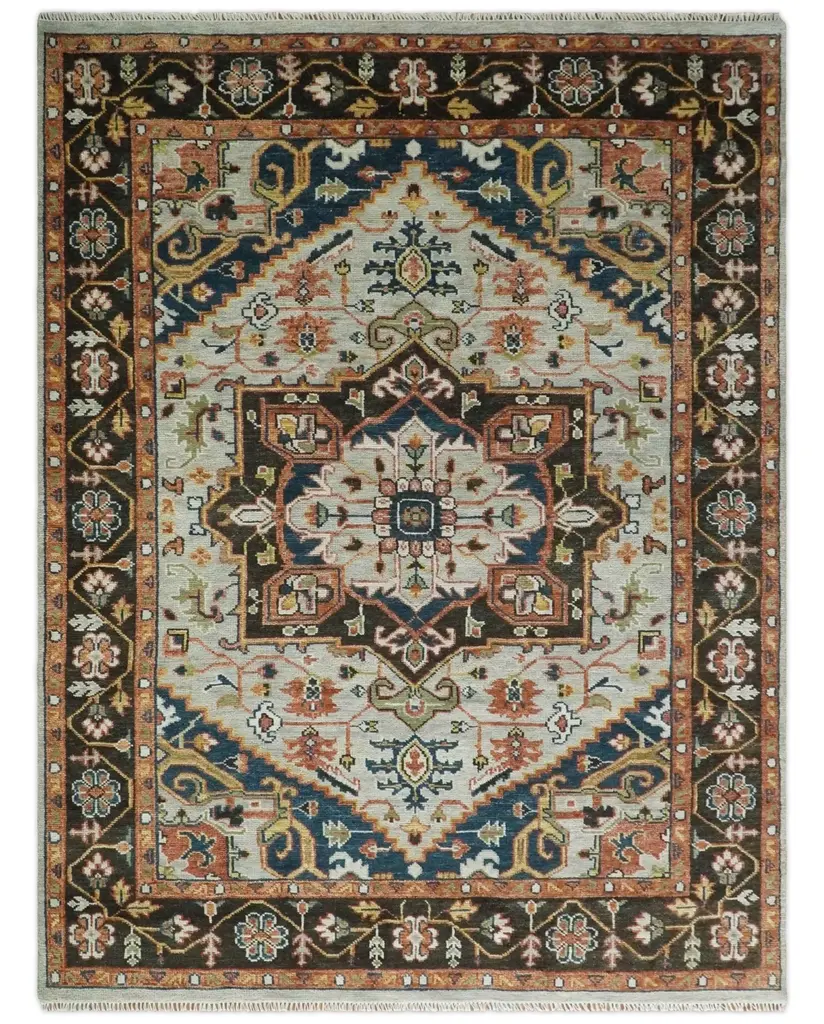 This Hand-Knotted Rug has been Made with Handspun Wool. The beautiful colors of the rug carry a legacy of the heirloom rug. The traditional design of the rug completes your space without making it look busy. Hand-Knotted rugs are durable and can last for decades if treated right. Hand-Knotted Rug Sizes are made to order 30-45 days Made with Wool Color: Brown and Blue Made with 20 knots per square inch This specific rug is made in India, in the city of Bhadohi. Bhadohi is one of the biggest rug manufacturing cities. Carpet weaving in the region dates back to the 16th century during the reign of Akbar. The skilled artisans of Bhadohi have been carrying the tradition of rug-making for centuries. USERS GUIDE Avoid prolonged moisture Vacuum regularly and/or shake to remove dust Do not pull any loose threads. Use scissors to simply cut the ends The blot spills immediately with a white cloth. Harsh chemicals may damage or fade the rug Use rug protectors under heavy furniture