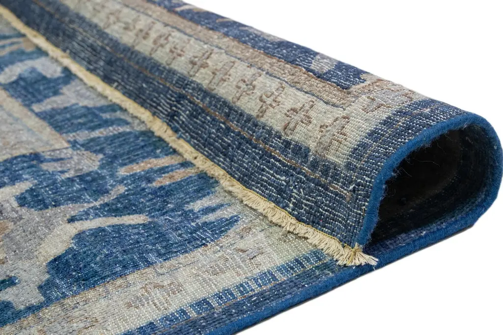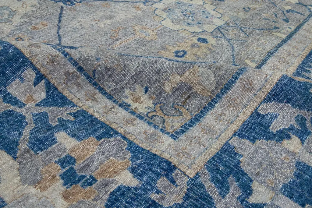 Blue And Gray Indian Mahal Wool Rug Handmade By Apadana