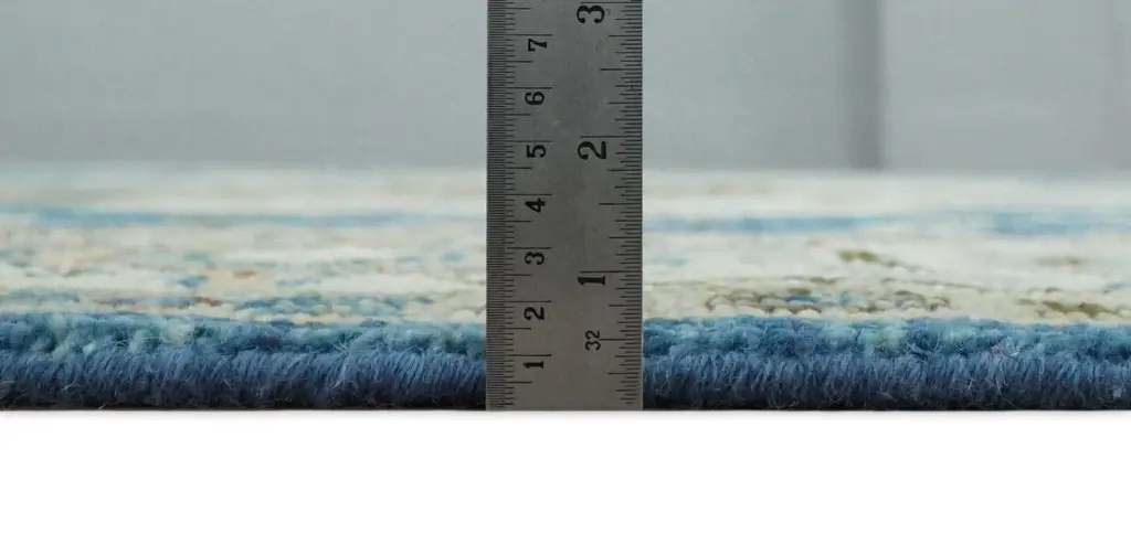 This Hand-Knotted Rug has been Made with Handspun Wool. The beautiful colors and design of the rug carry a legacy of heirloom rugs. The large design of the rug completes your space without making it look busy. The rug is durable and can last for decades if treated right. Hand-Knotted Made with Wool Made to order in 30-45 Days Color: Blue and Ivory Made with 18 knots per square inch This specific rug is made in India, in the city of Bhadohi. Bhadohi is one of the biggest rug manufacturing cities. Carpet weaving in the region dates back to the 16th century during the reign of Akbar. The skilled artisans of Bhadohi have been carrying the tradition of rug-making for centuries. USERS GUIDE Avoid prolonged moisture Vacuum regularly and/or shake to remove dust Do not pull any loose threads. Use scissors to simply cut the ends Blot spills immediately with a white cloth. Harsh chemicals may damage or fade the rug Use rug protectors under heavy furniture