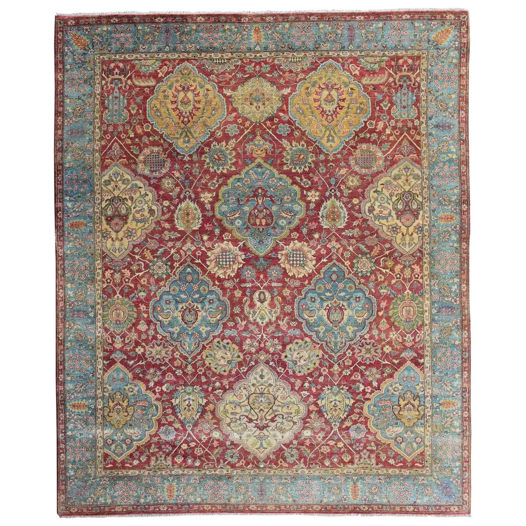 Blue & Red Antique Persian Tabriz Wool Rug - 7'8" x 10'1"