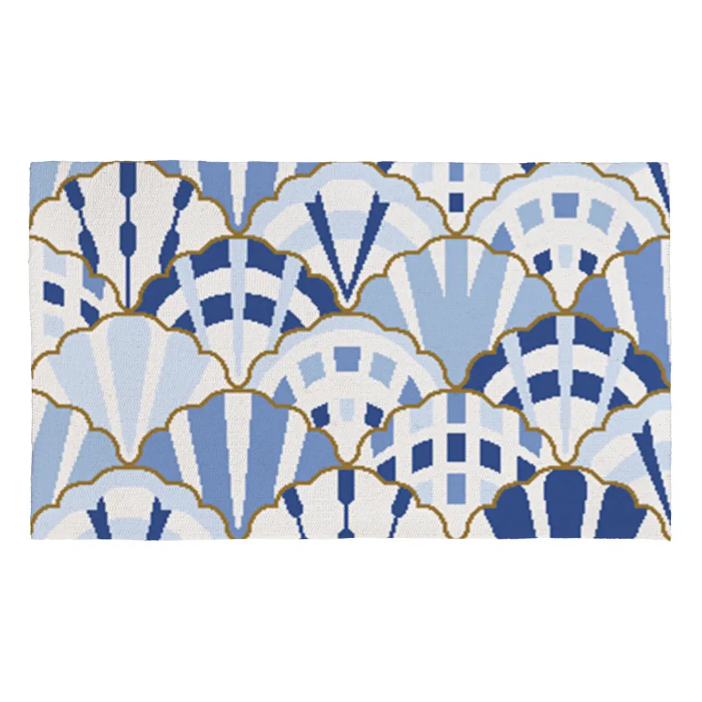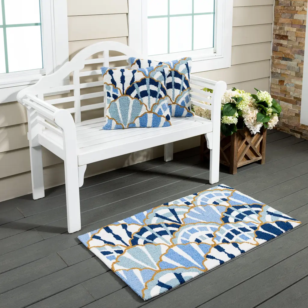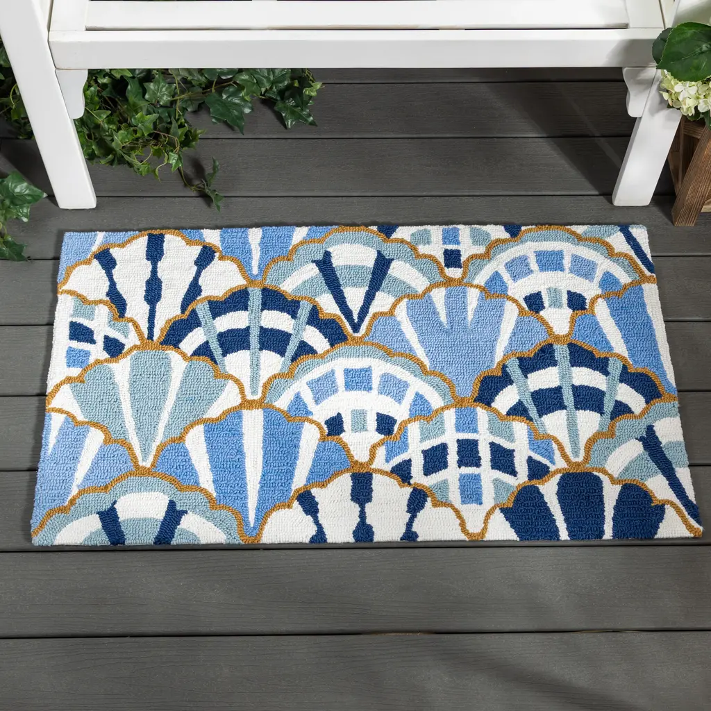 Blue Coastal Shells Pattern Indoor/outdoor Hooked Rug 24"x42"