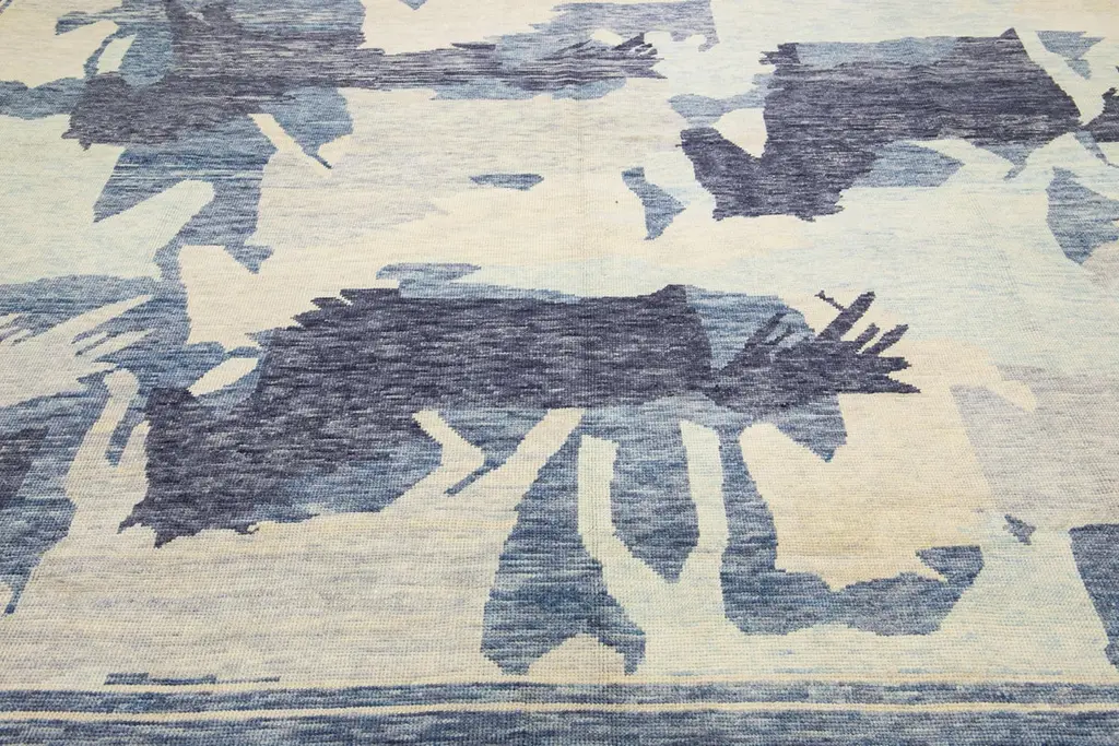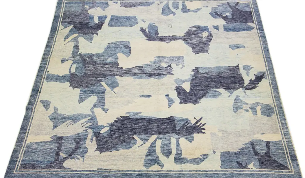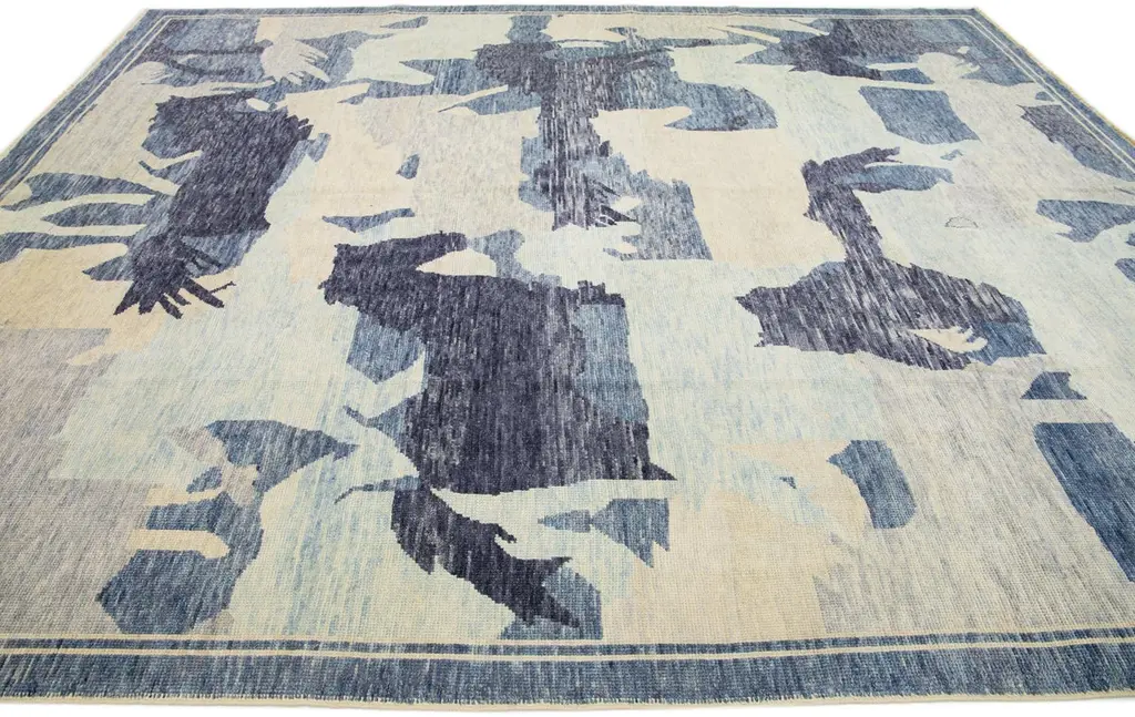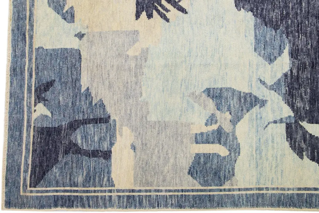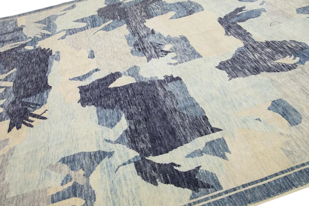 Blue Contemporary Turkish Wool Rug Handmade With Abstract Pictorial Motif