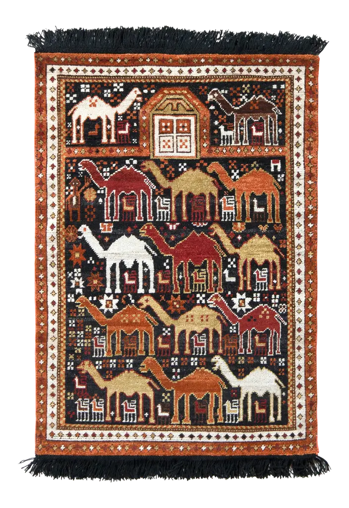 Elevate your home's decor with the unique beauty of this Turkish Handmade Rug. Crafted with the highest quality wool, this Oushak rug is soft and plush to the touch, while its intricate weaving ensures that it will withstand the test of time. Featuring an eye-catching Horses Pictorial Design with an Abstract twist, this Room Size Rug is the perfect way to add a touch of elegance and intrigue to any space.This rug measures 11' x 13'5".Our Rugs are professional cleaning before shipping.