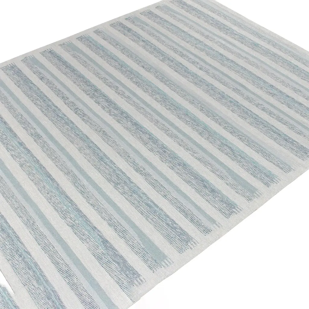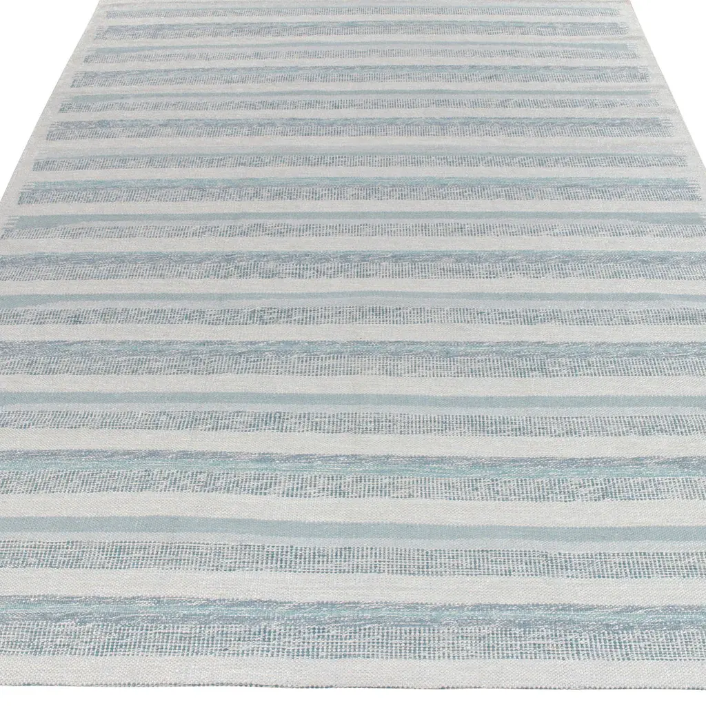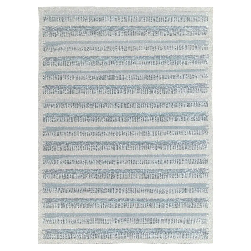 A soothing spectrum of blue hues voice the subtly nuanced striated design in this Swedish-style flatweave rug handwoven from silk. The clever spirit of minimalist design is delicately expressed in our collection of handwoven Swedish-style flatweave rugs. Soothing palettes of soft faded hues voice the midcentury modern inspired design — composing light & versatile pieces handwoven for all types of interior spaces.