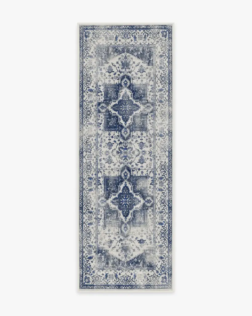 An homage to the Sanskrit word for rebirth, the Samsara collection introduces a new, closed-loop process that upcycles forgotten oversized vintage carpets into hundreds of colorful and smaller-sized rugs. Collaborating closely with a long-time artisanal partner in Pakistan, each hand-knotted Samsara rug is individually tailored and revitalized through a combination of restorative processes. With no matter wasted, the Samsara rugs assume the ancient axiom that they too will be born again through cycles of change.