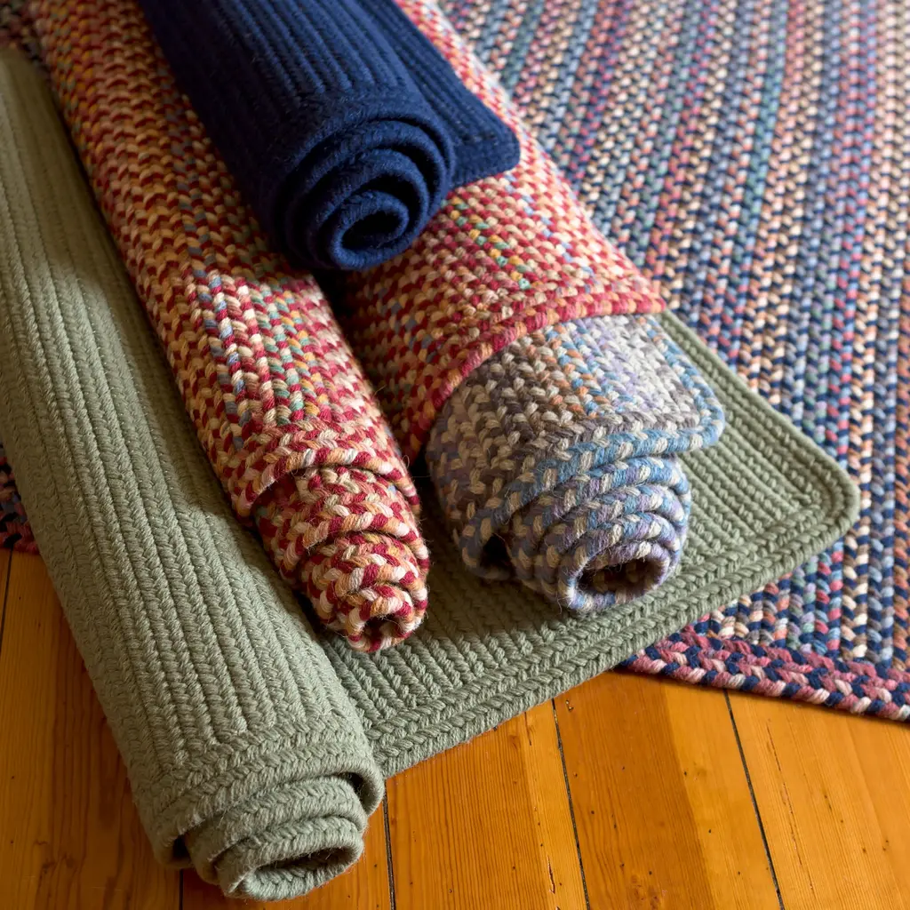 You can’t beat the quality and value in our USA-made Blue Ridge Rugs. Crafted of 100% wool, these braided rugs are both soft and durable. They add a classic country or traditional feel to any room.Our Blue Ridge Rugs are flat braided using 100% wool yarns, which create a gorgeous and long-lasting floor covering. They combine space-dyed and solid yarns for a unique look, plus we have a large selection of solid and blended colors to complement your decor.With a woven knit tube inner core, these heavy-weight braided rugs will retain their shape and strength. So comfortable, colorful and durable, you’ll want one in every room of your home. Plus, they reverse for twice the wear! Use of a rug liner/pad is recommended. Rugs are approx. ½" thick. Made with pride in the USA by Rhody Rug, a family run company.