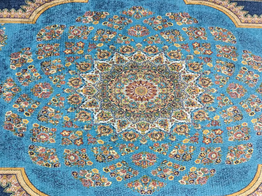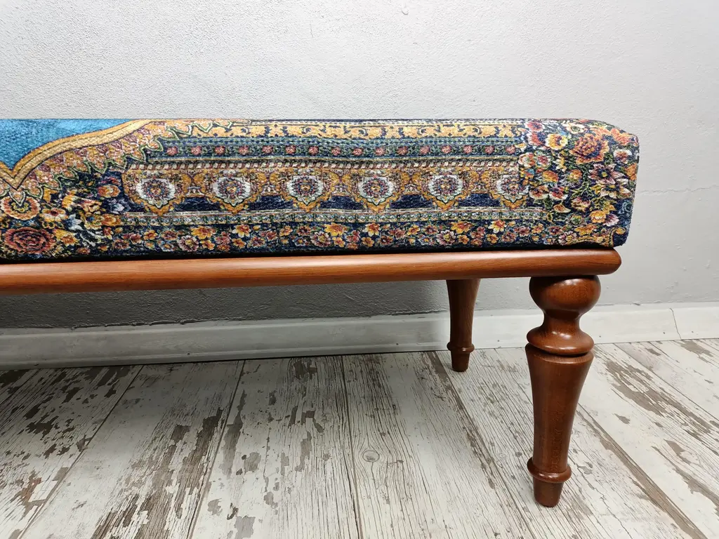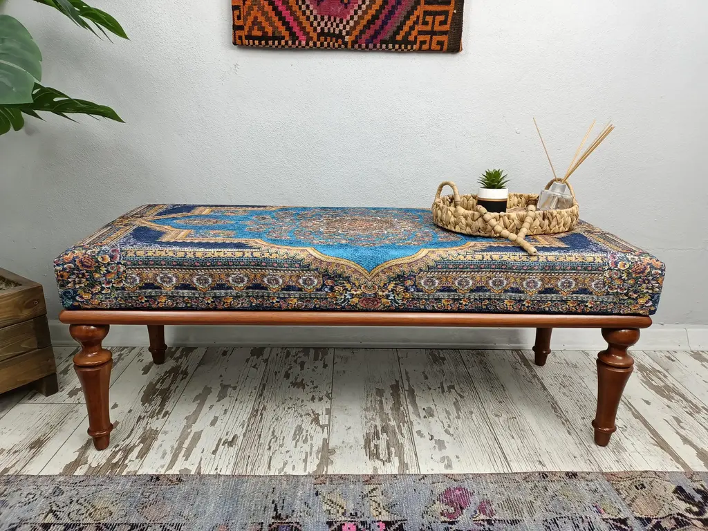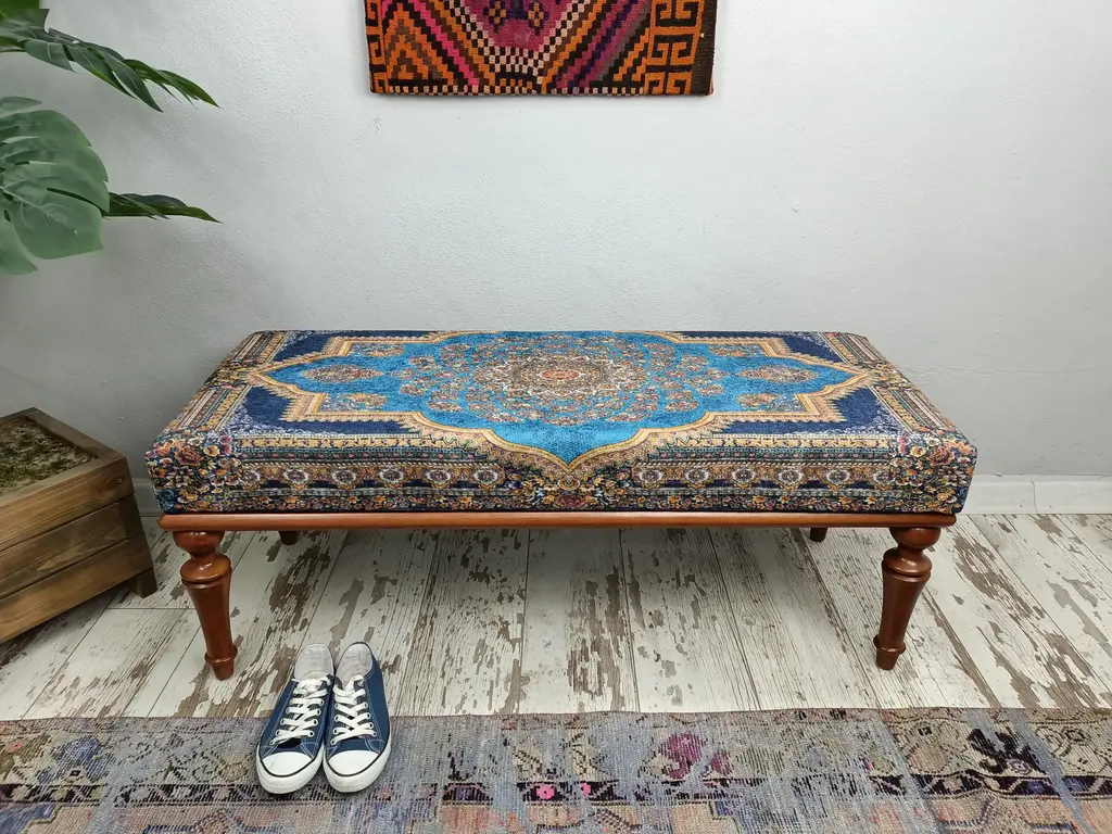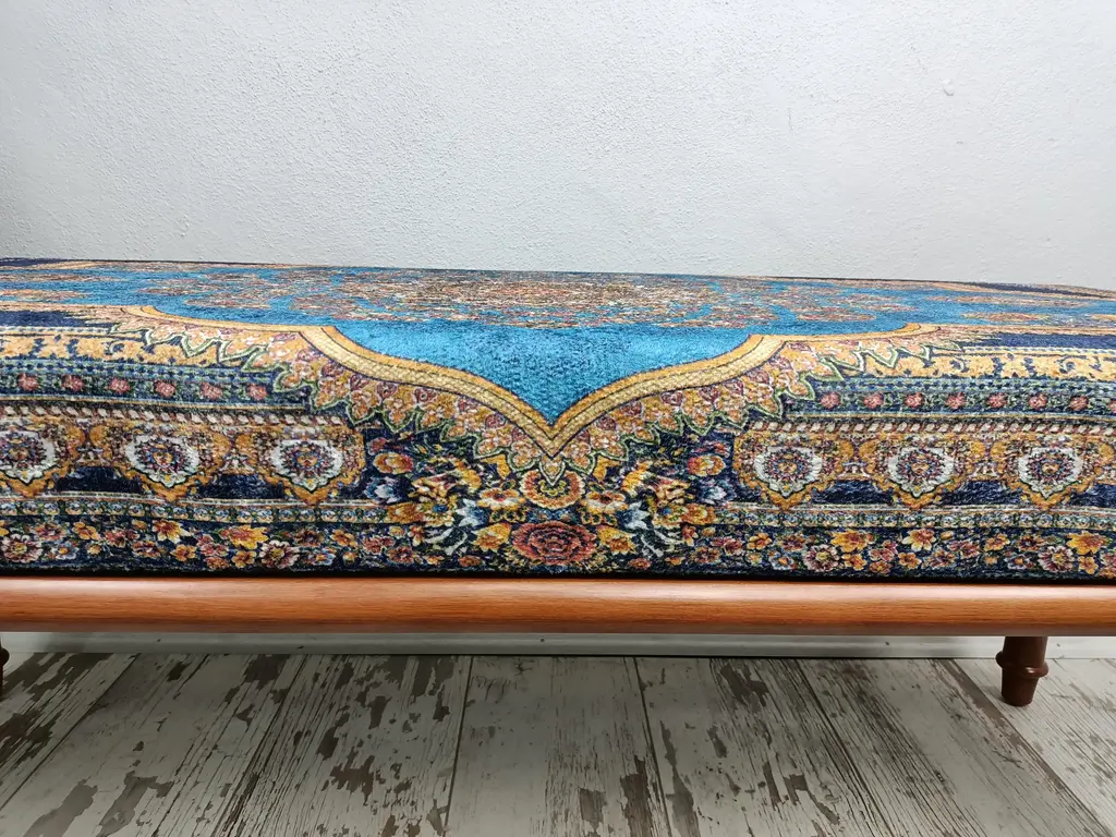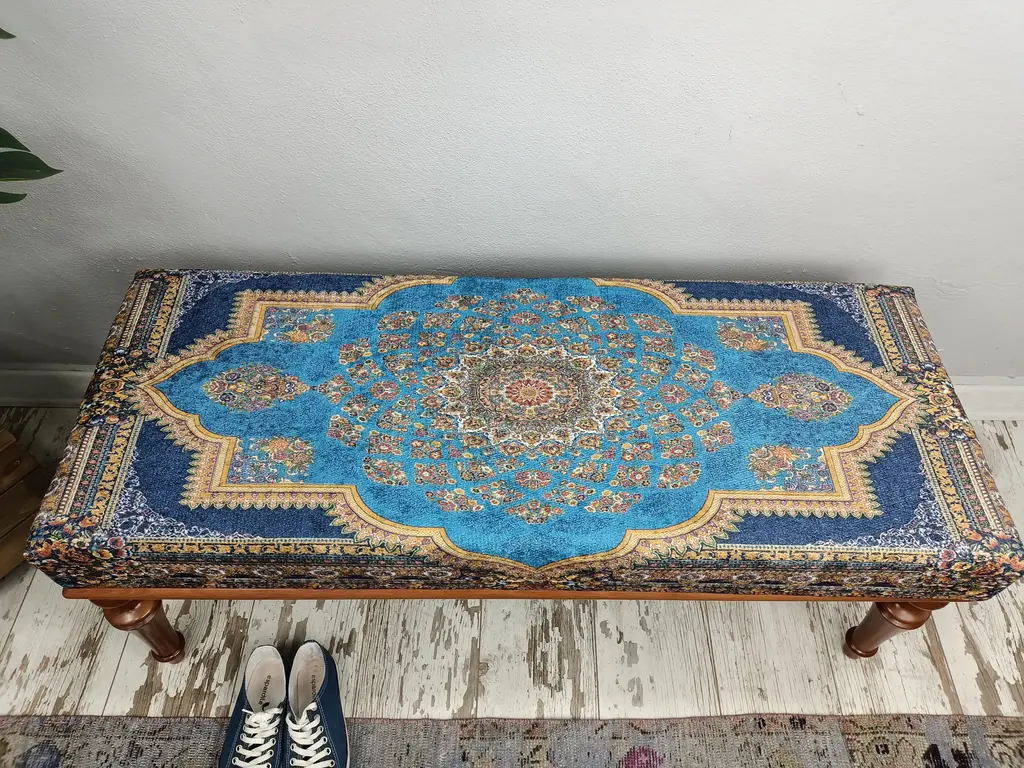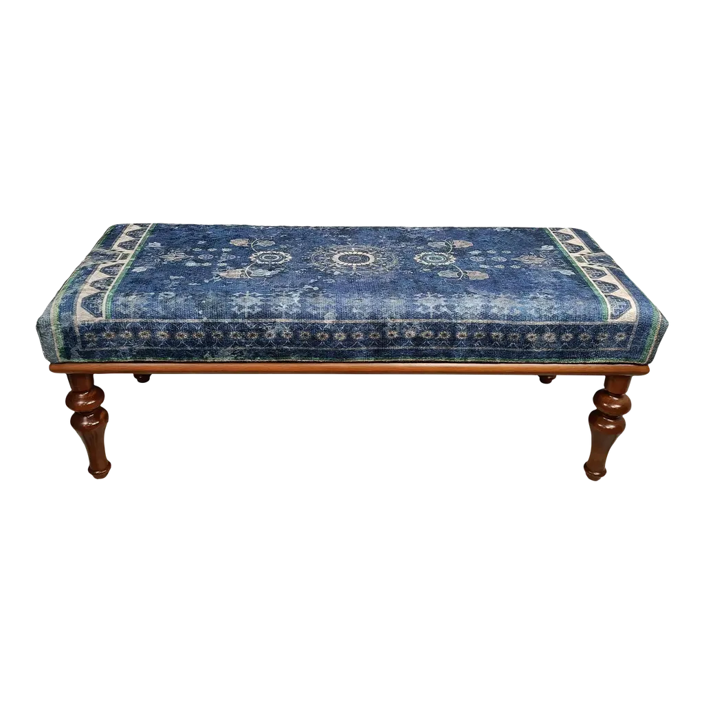 Blue Rug Printed Fabric Upholstered Dining Bench