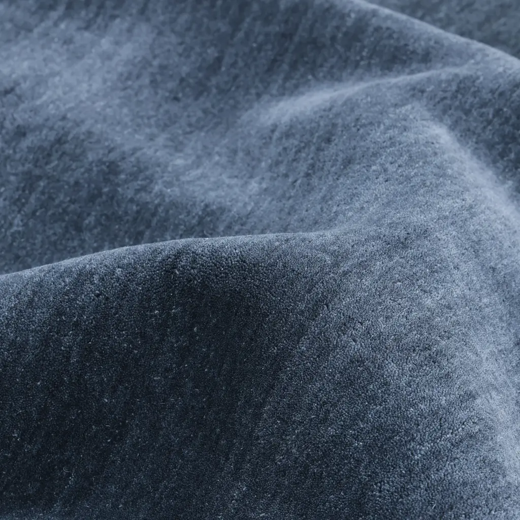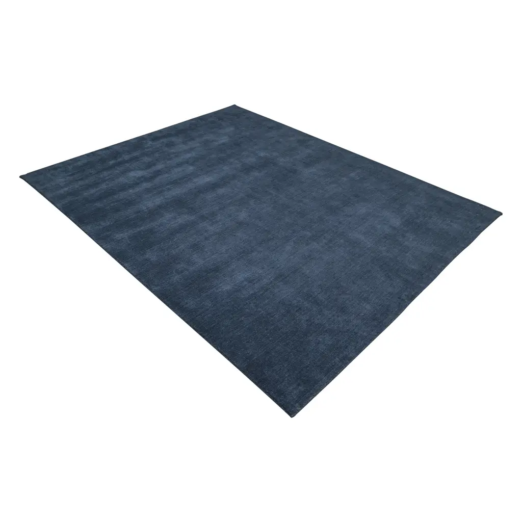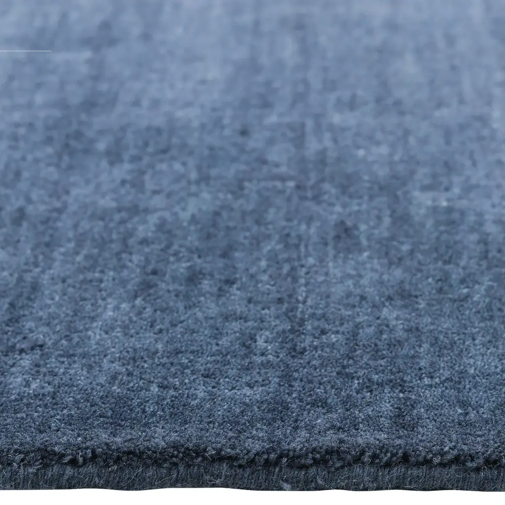 This Blue Solid Wool rug from India features a luxurious dark blue color with subtle shading variations. Hand loomed with a soft and velvety texture, this high-end rug exudes quality and sophistication. A stunning addition to any space.