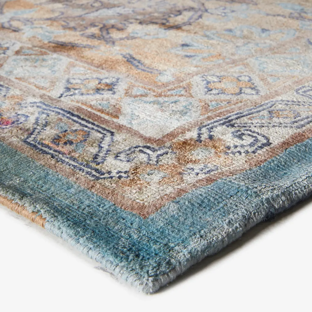 Hand-knotted from the silk + wool of upcycled saris, this rug was made luminous by sun power, low-impact dyes, and closed-loop water washes. The fusion of contemporary design and traditional craft meets in one of our most sustainable rug collections yet, available exclusively at abc.