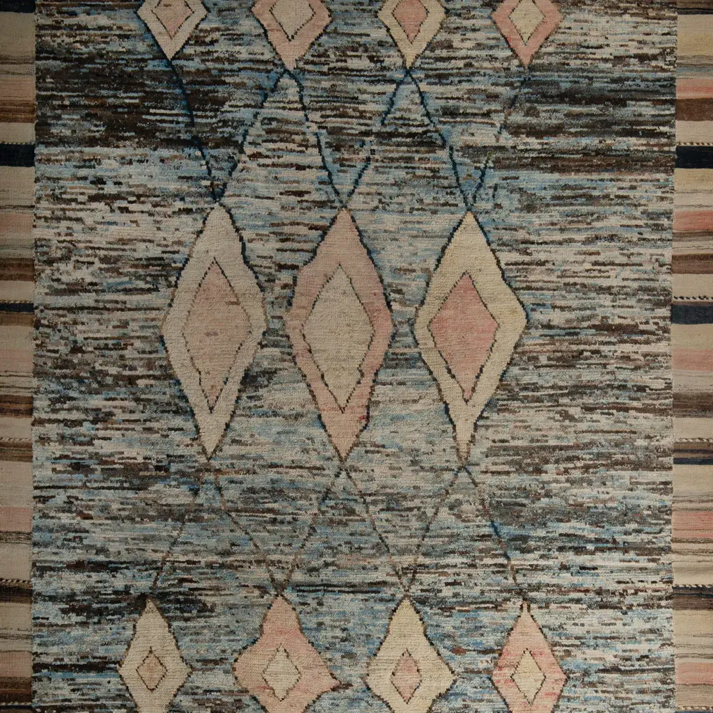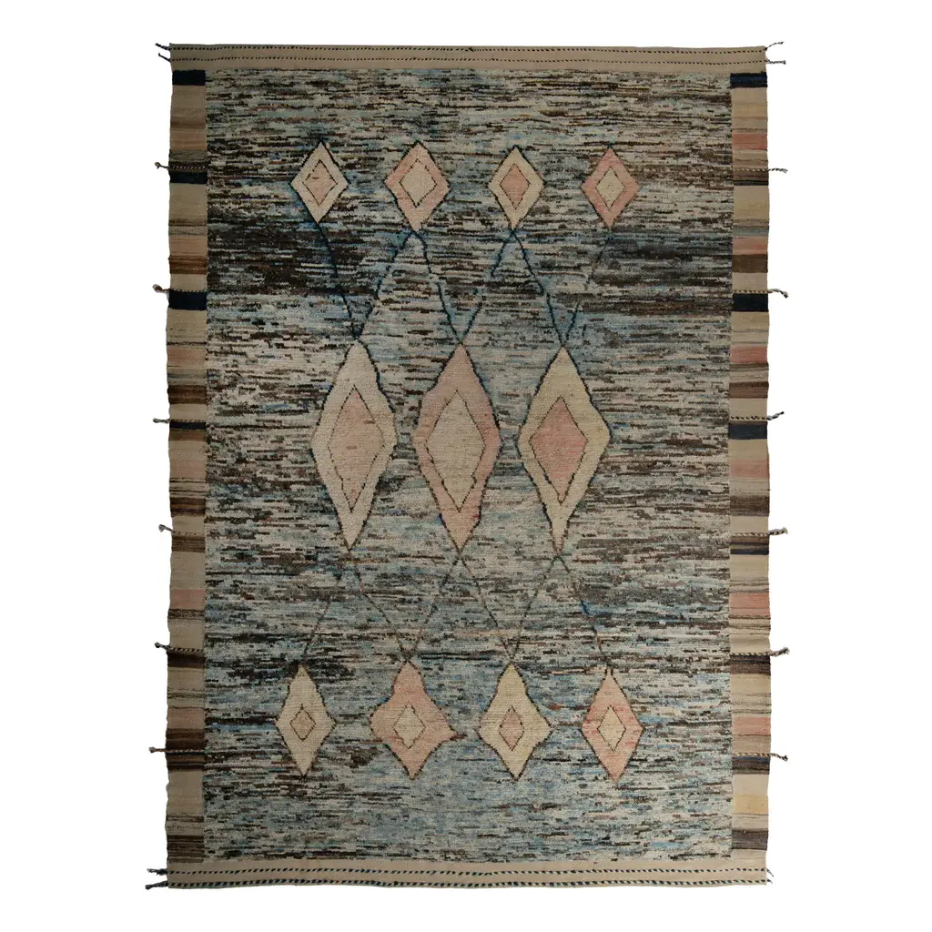 Inspired by the grounding foundations of Earth's natural colors and pure materials, the Zameen Collection features a wide array of Mid-century modern motifs in soft neutral tones. Hand-knotted in Central Asia, Zameen rugs will be celebrated for centuries with their compelling traditional elements, sturdy construction, and impactful presence in any room. Bring home timeless warmth with abc's newest assortment of one-of-a-kind rugs.