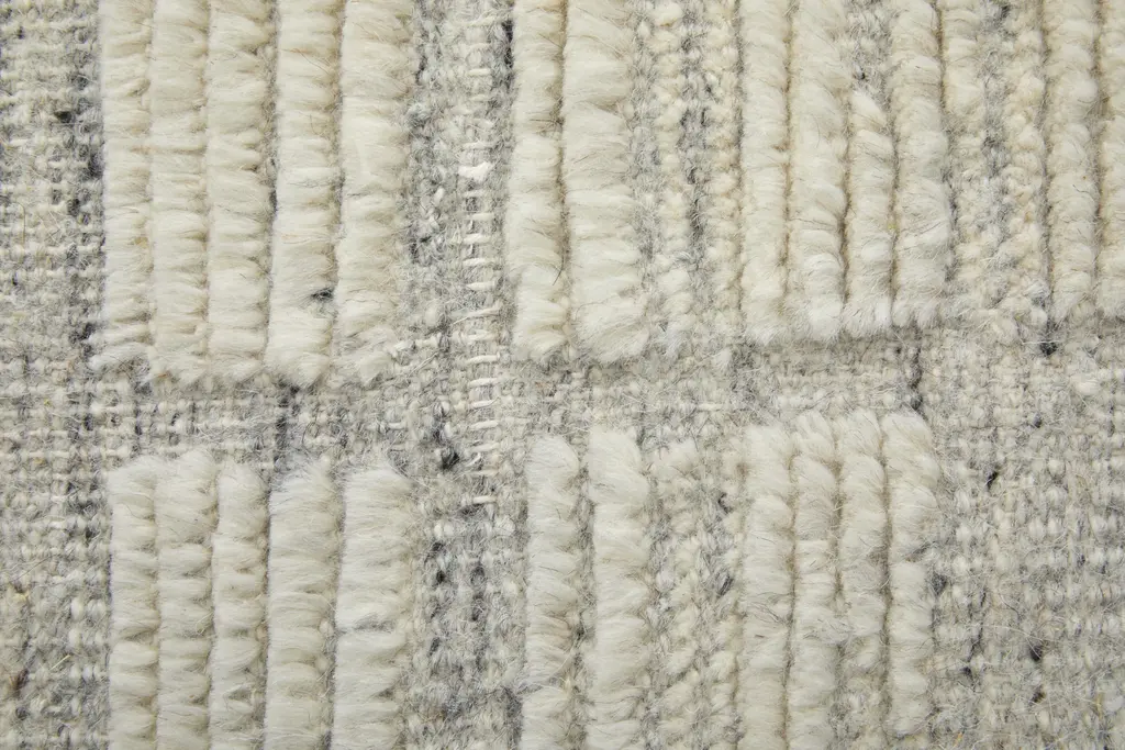 Collection: Bluff Colors: Ivory Construction: Hand Knotted Material: Face: 100%Wool Pile: Low Pile Pile Height: 0.47" Styles: Contemporary,Scandinavian,Casual Backing: N/A Made In: India Thickness: 0.47" Price Range: $$$$$ (Premium)