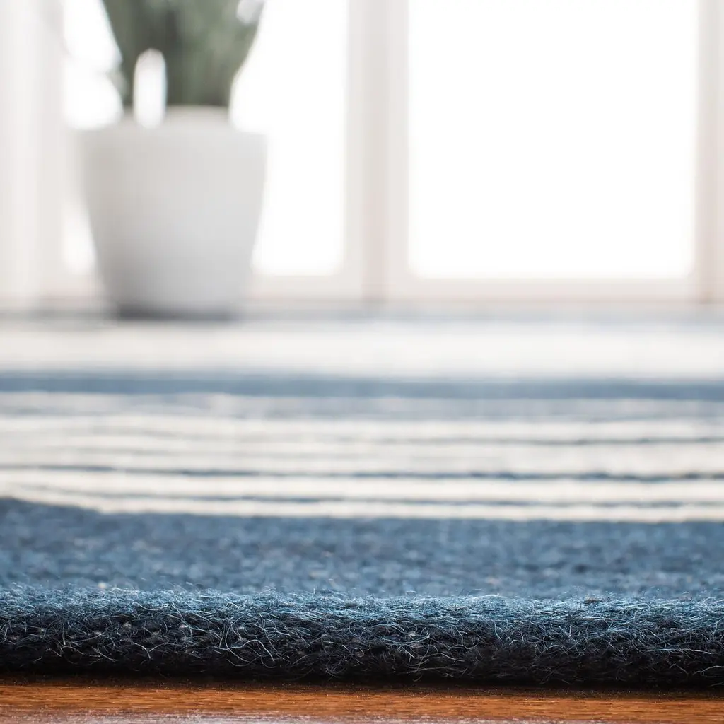 Elevate your space with the timeless elegance of our large 9' x 12' Cinder wool area rug. This exquisite piece boasts a handwoven construction that showcases exceptional craftsmanship and attention to detail. Made in India, the rug features a sleek 1/4" height profile for a plush feel without excessive bulk. Drawing inspiration from classic style, this rug presents a minimalist pattern with clean lines. The cinder backdrop serves as a versatile foundation that is tastefully interrupted by rhythmic ivory stripes, bringing a sense of balance and sophistication to any room. The large rectangular shape makes it a perfect fit for spacious living rooms, bedrooms, or dining areas, providing a luxurious underfoot experience and a striking visual statement. Crafted with high-quality wool, the rug ensures durability and comfort that will last for years to come. Its subtle charm and high-end feel enhance both contemporary and traditional decors, inviting a warm and inviting atmosphere into your home.