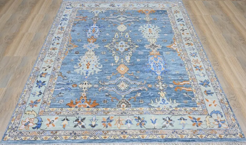 Introducing our model of exquisite new rug featuring a stunning Oushak design and delightful color palette. Entirely hand-knotted with precision, it boasts a luxurious blend of wool velvet on a cotton foundation. Elevate your space with this elegant addition.✨✨✨✨Our workshops are primarily located in India, where we can craft various models offered in different sizes. You also have the option to choose colors beyond those presented in the models, selecting from a color palette we provide. Additionally, we can create custom models not featured in our catalog, tailored to your preferred sizes and colors.We specialize in different weaving techniques, including hand-knotted, hand-tufted, and hand-woven carpets. Materials range from wool, silk, cotton, to viscose for a more cost-effective silky effect. The quality of weaving and knot finesse is influenced by intricate designs and client preferences.Hand-knotted and hand-tufted carpets feature a velvet pile, while hand-woven ones are without pile, offering a double-sided finish.Production timelines vary based on dimensions, finesse, and weaving type. Feel free to select your preferred model, colors, and dimensions for your custom carpet. Alternatively, suggest the carpet designs you'd like, and we can create them if they align with the manufacturing options we offer.