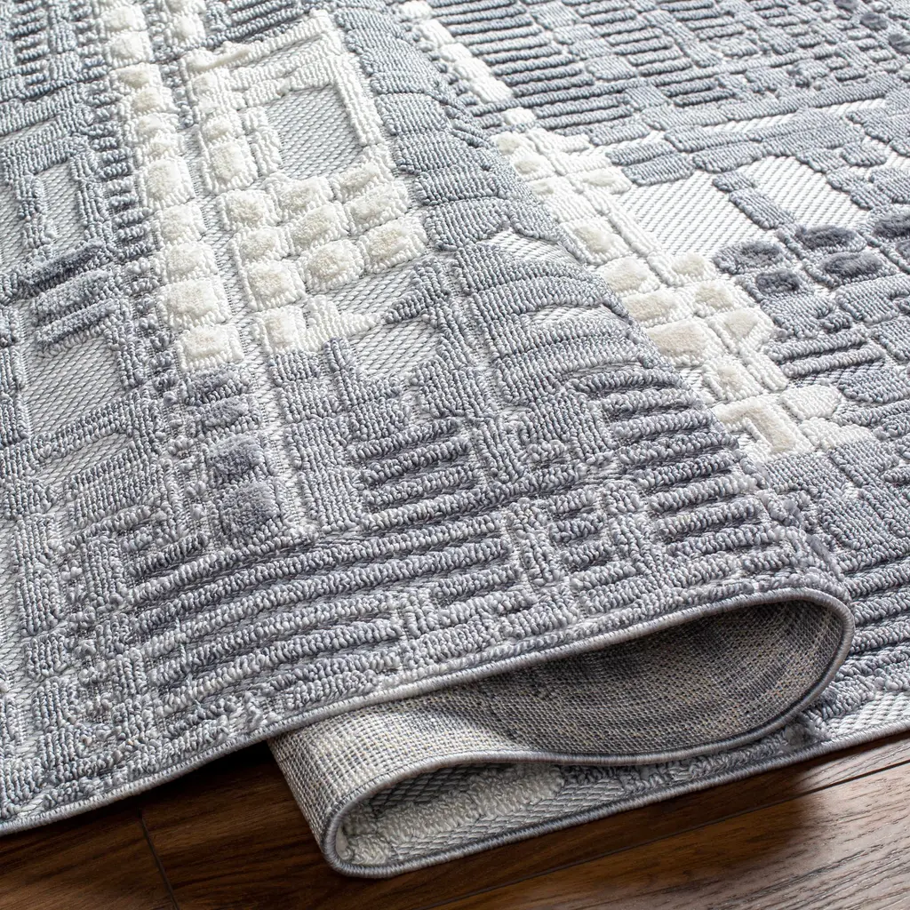 Collection: Bodhi Colors: White, Denim, Teal Construction: Machine Woven Material: 100% Polyester Pile: Medium Pile Pile Height: 0.47" Styles: Transitional,Traditional Made In: Turkey Thickness: 0.79" Fringe Length: 4.3" Price Range: $$$$$ (Affordable)