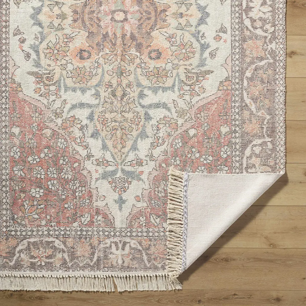Collection: Bohdan Colors: Terracotta, Ivory, Slate Blue, Charcoal, Taupe Construction: Hand Loomed Material: 55% Cotton, 45% Polyester Pile: Low Pile Pile Height: 0.1" Styles: Traditional Made In: India Thickness: 0.5" Price Range: $$$$$ (Affordable)