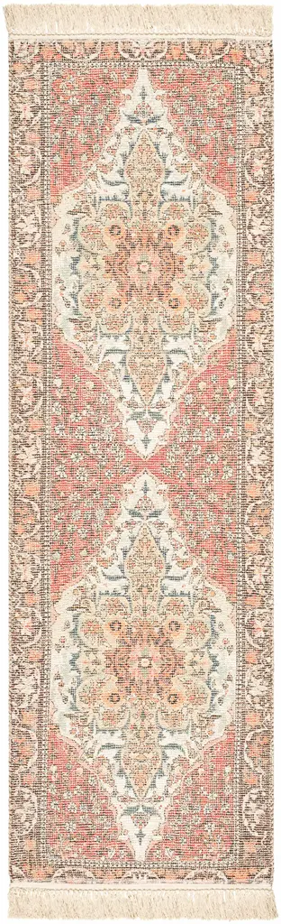 Collection: Bohdan Colors: Terracotta, Ivory, Slate Blue, Charcoal, Taupe Construction: Hand Loomed Material: 55% Cotton, 45% Polyester Pile: Low Pile Pile Height: 0.1" Styles: Traditional Made In: India Thickness: 0.5" Price Range: $$$$$ (Affordable)
