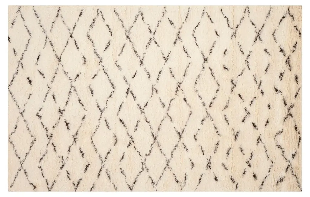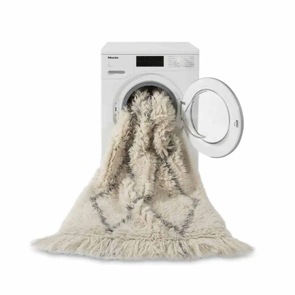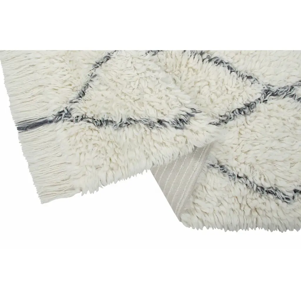 Rectangular-shaped washable wool rug with classic Berber-inspired design in a soft and fluffy long pile, finished with messy one-knot fringes at edges. A cozy rug that will definitely give your home a bohemian touch. A cotton tote bag and a non-slip underlay are included with every rug.