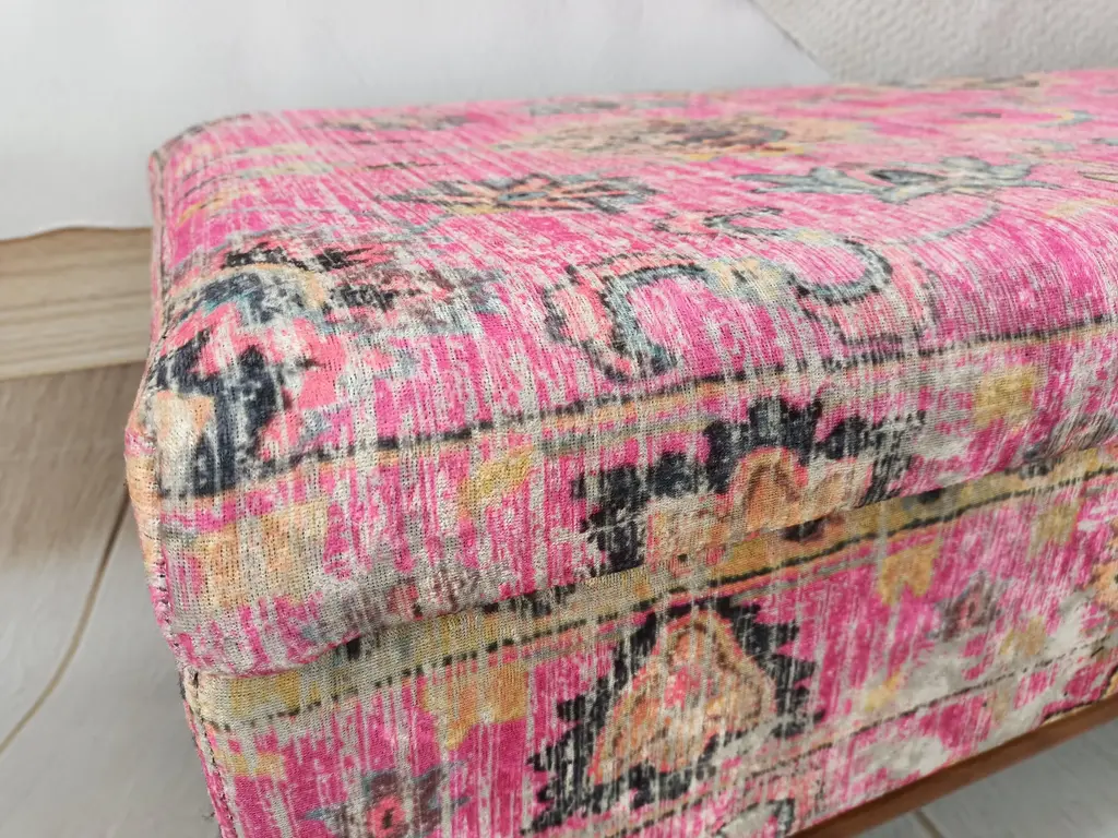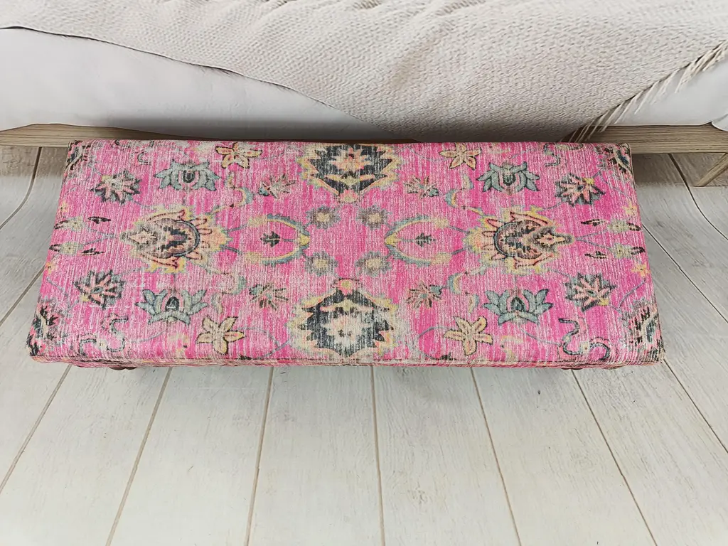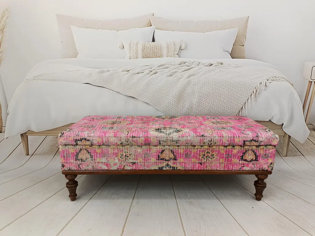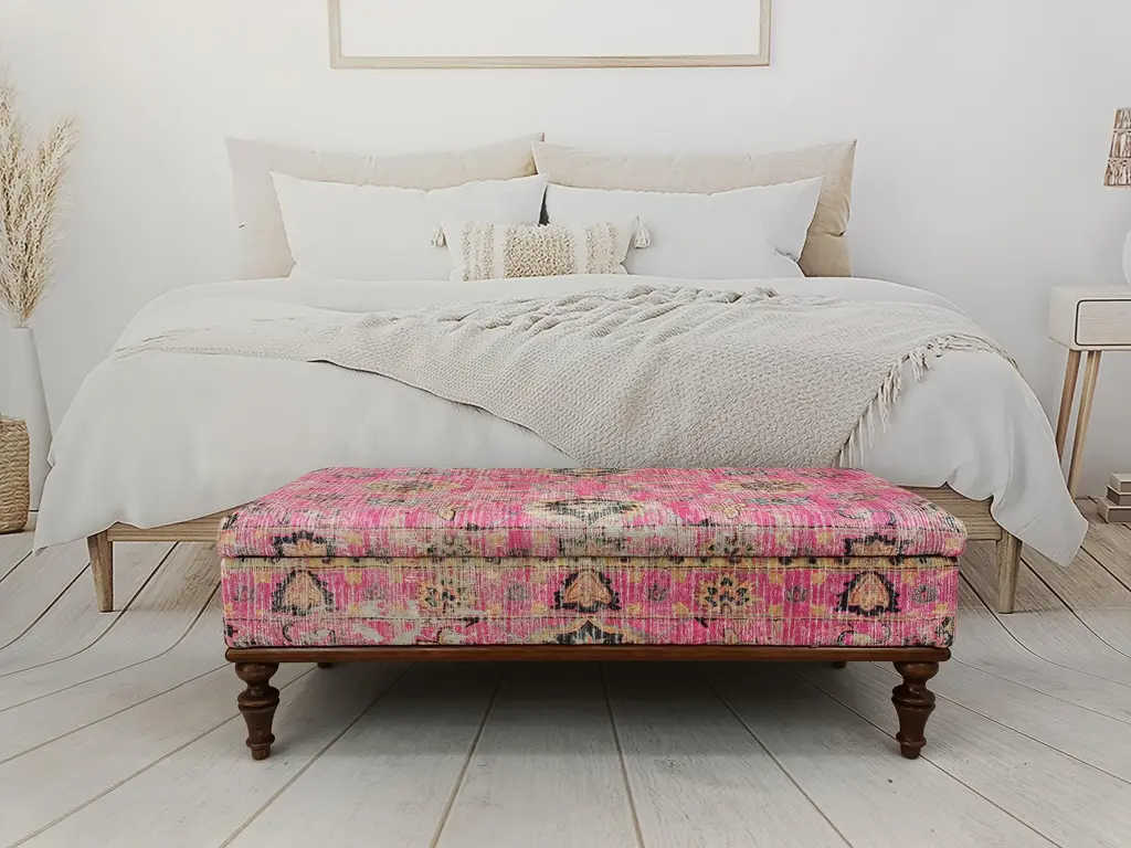 Bohemian Pink Rug Print Fabric Upholstered Storage Bench