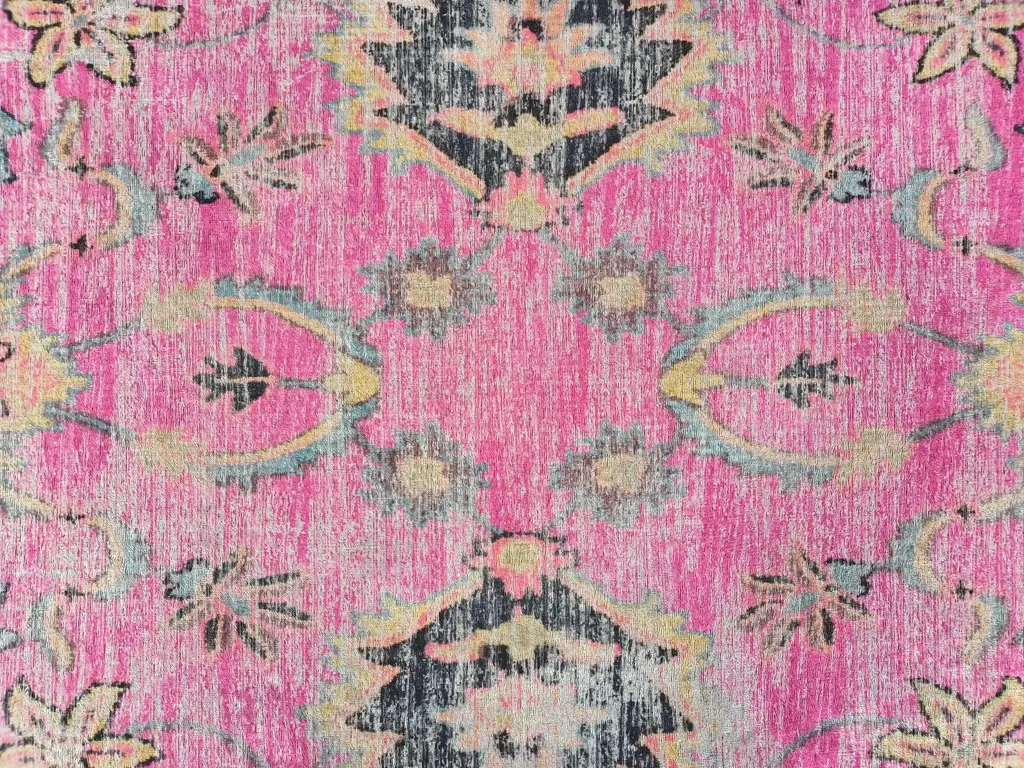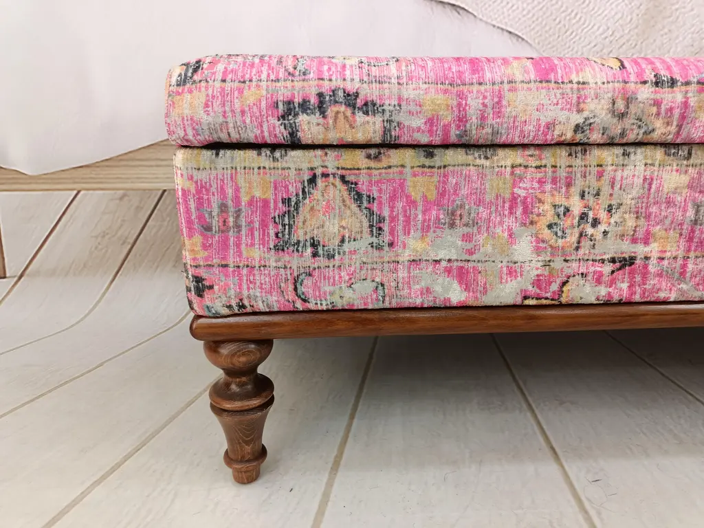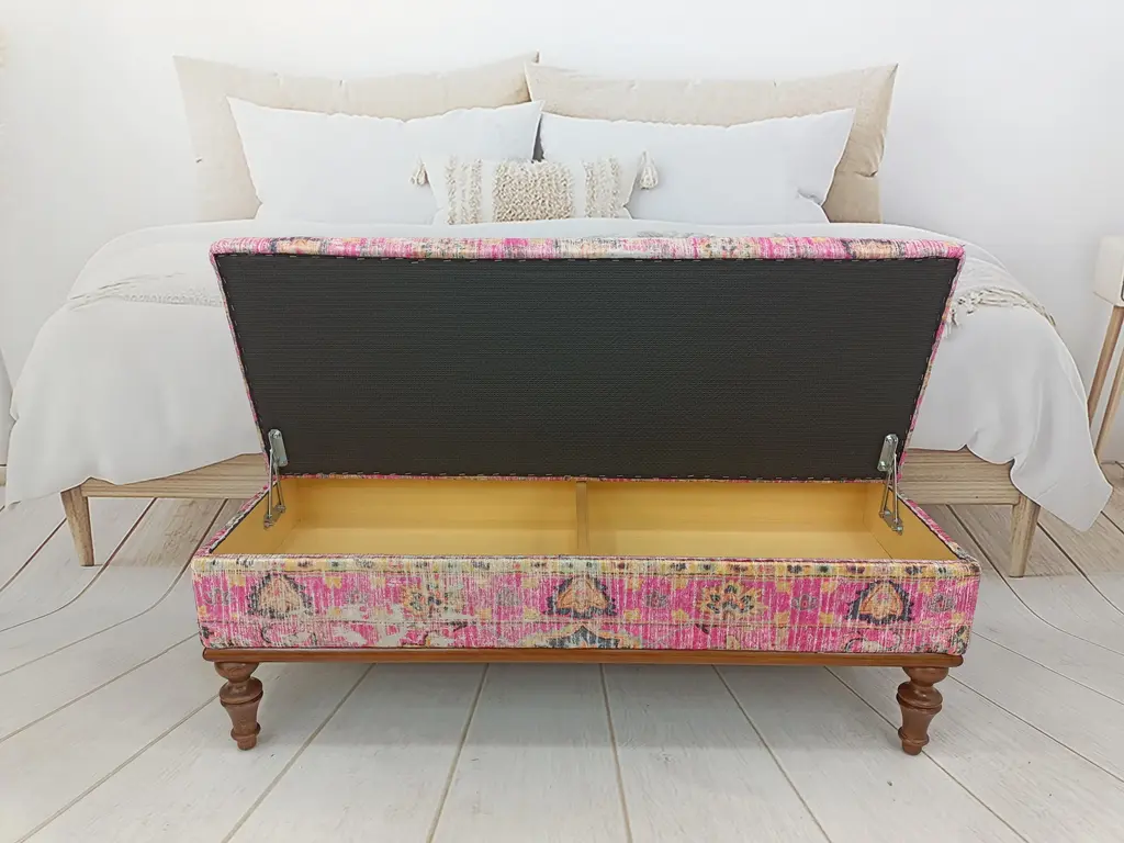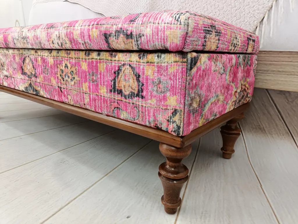 Bohemian Pink Rug Print Fabric Upholstered Storage Bench