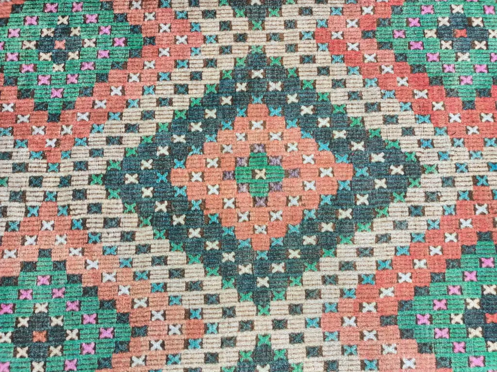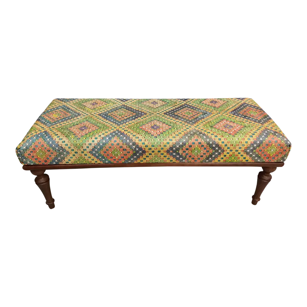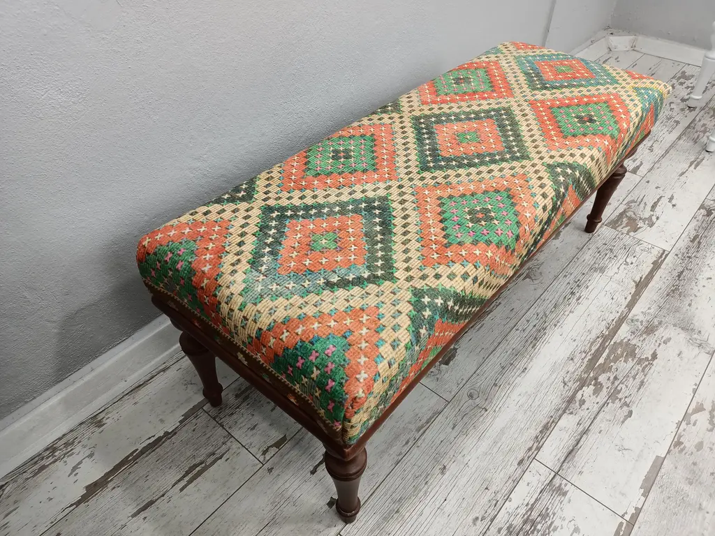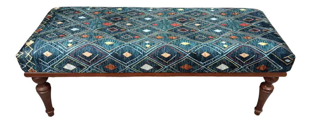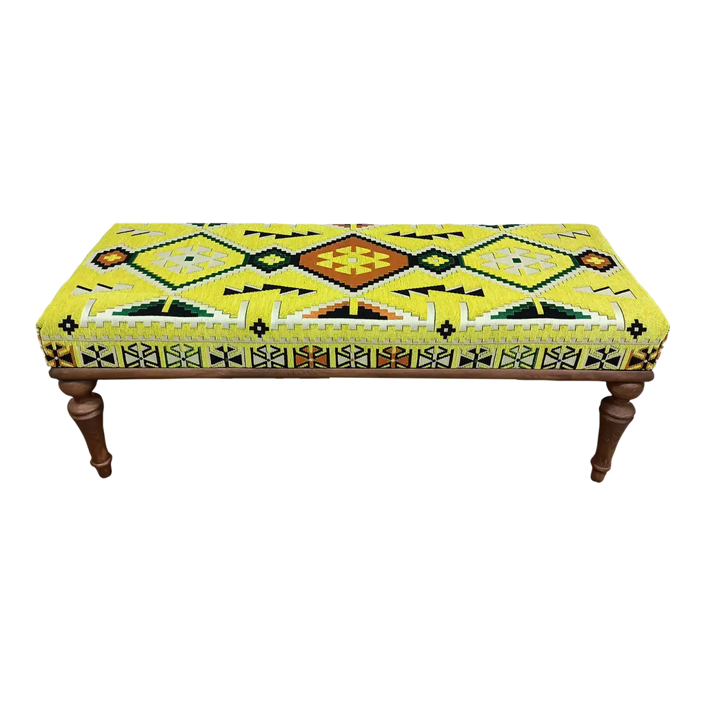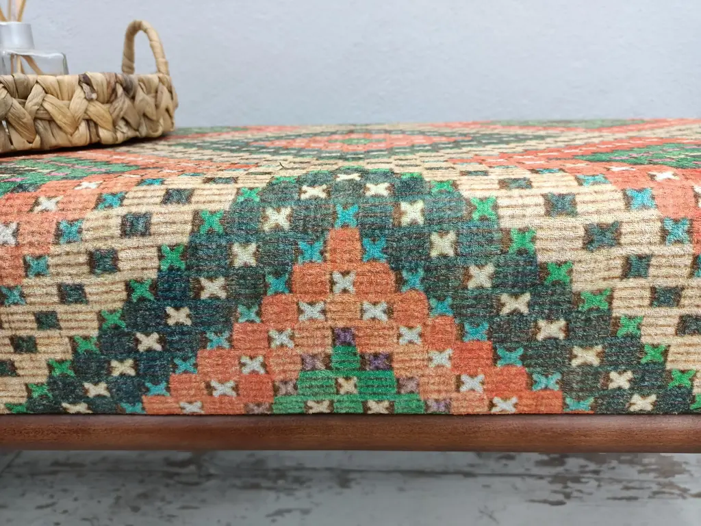 Details SIZE: 18X18X48 Inches ( with legs ) - 45x45x120 cm TYPE: Handmade Ottoman Bench CONDITION: is good. CONSTRUCT: It will come with disassemble legs, you can easily put together ottoman top table ( body ) with legs. There is disassembled legs with screw. Set up time around 30 seconds. Please use soft floor to set up. MATERIALS: fabric printed with rug pattern, Hornbeam Body, Textile and zipper backside, poplar wood inside CLEANING: Professionally Cleaned and Disinfected