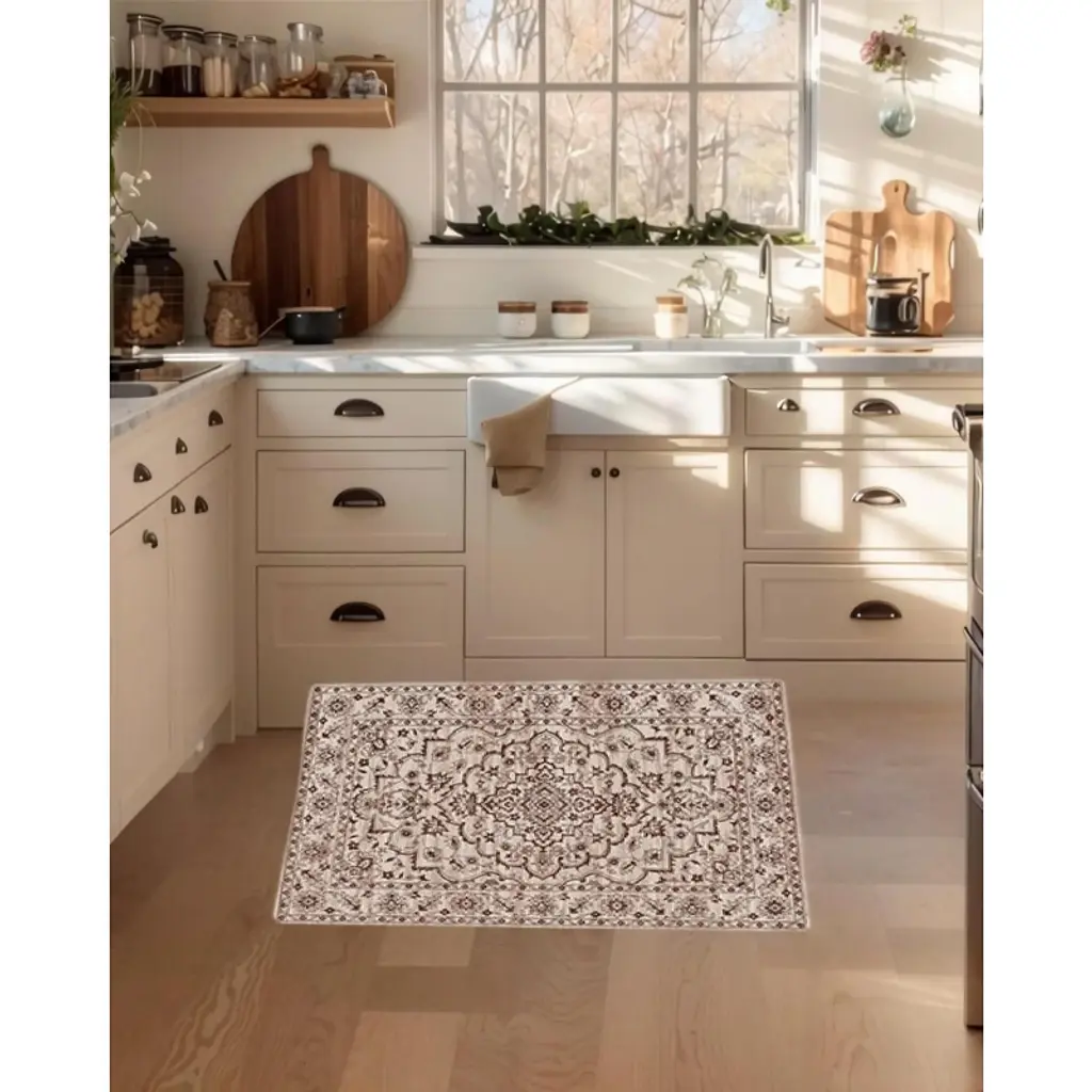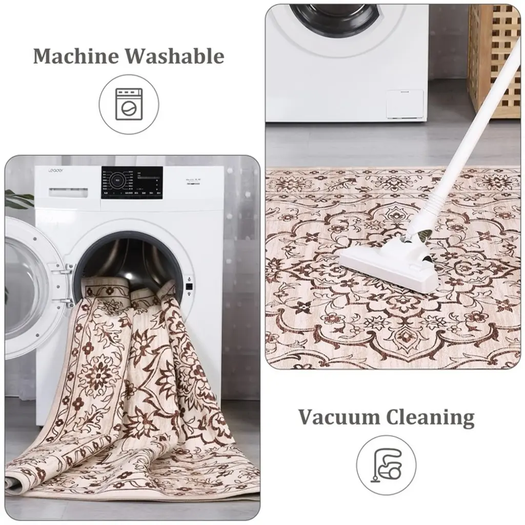 Boho Area Rugs, Modern Machine Washable Area Rug for Living Room Bedroom, Ultra Thin Low Pile Floral Rug, Soft Carpet with Non Slip Backing