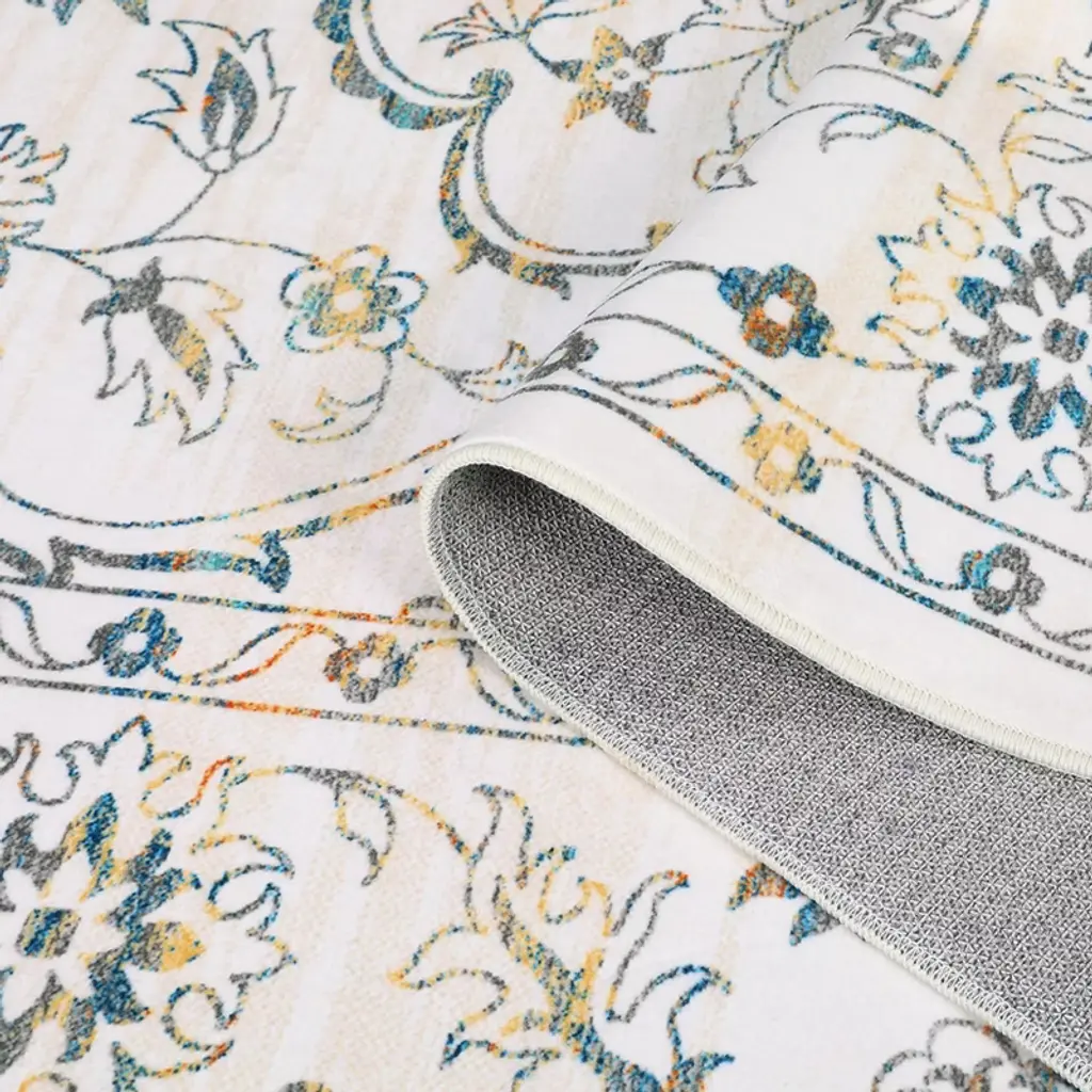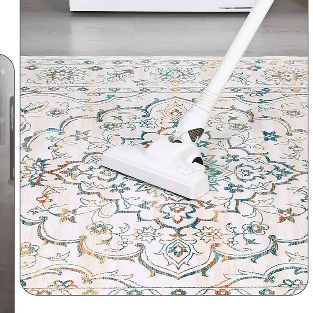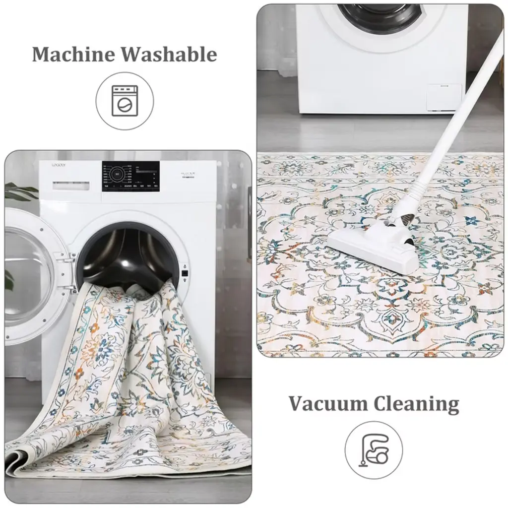 Boho Area Rugs, Modern Machine Washable Area Rug for Living Room Bedroom, Ultra Thin Low Pile Floral Rug, Soft Carpet with Non Slip Backing