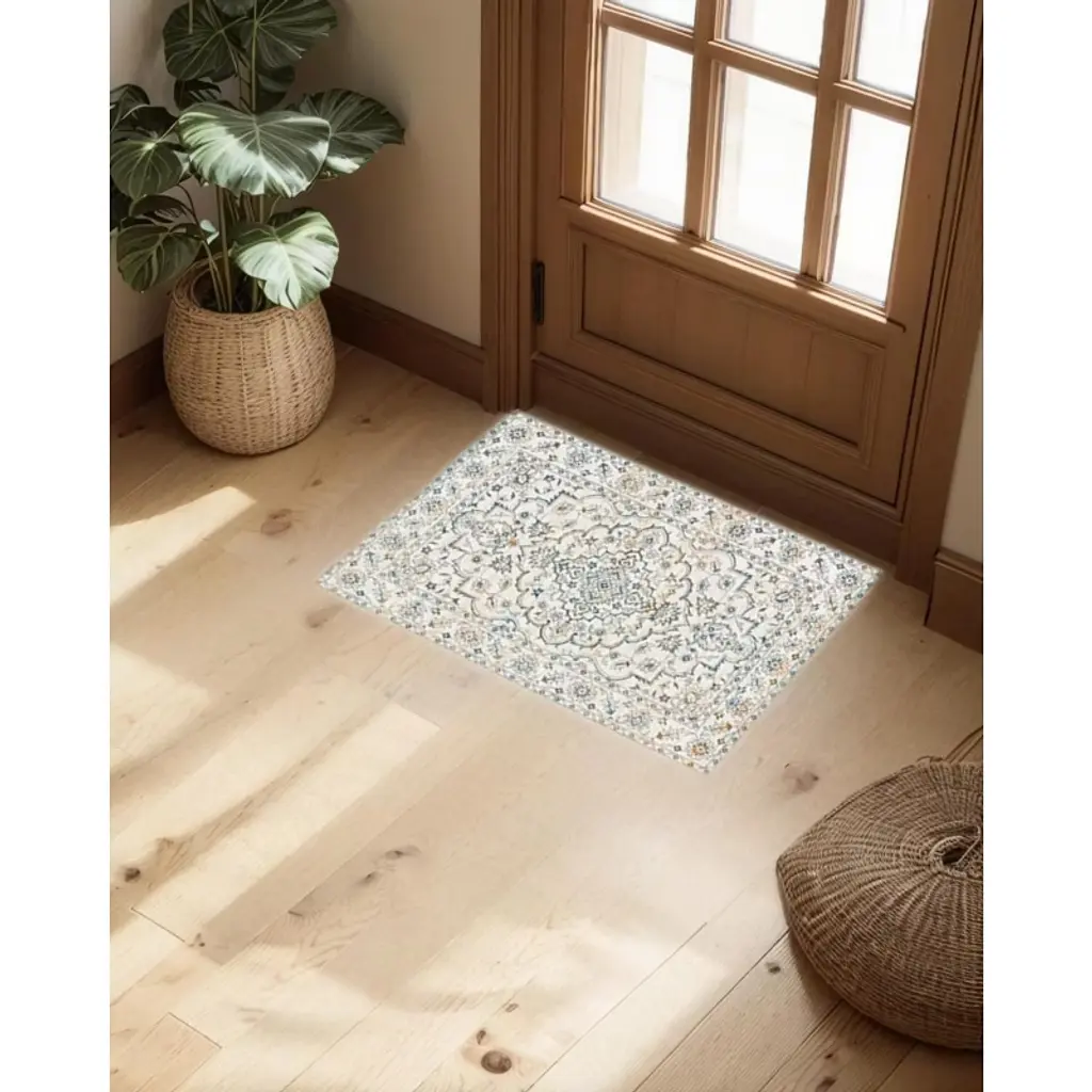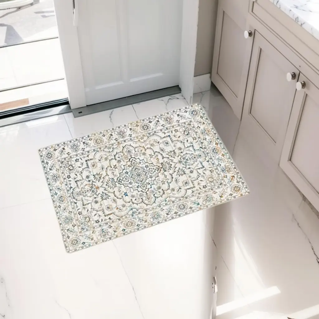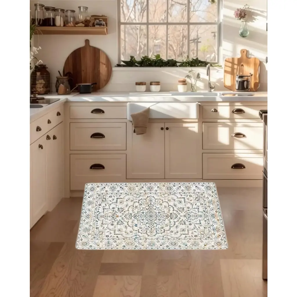 Boho Area Rugs, Modern Machine Washable Area Rug for Living Room Bedroom, Ultra Thin Low Pile Floral Rug, Soft Carpet with Non Slip Backing