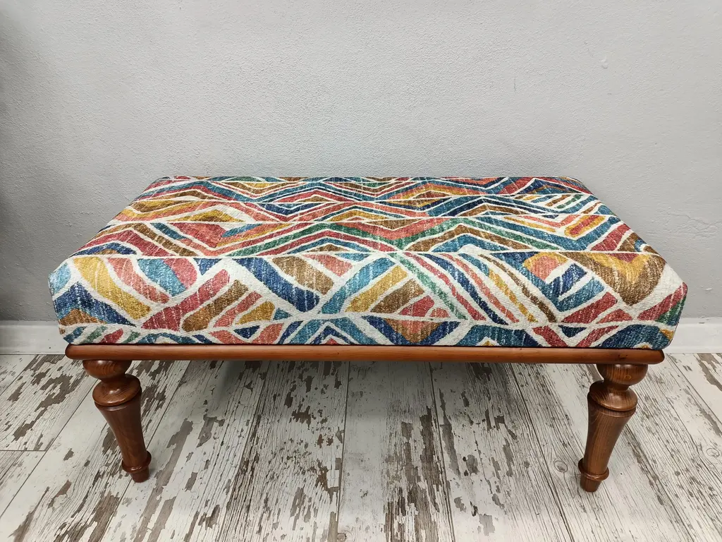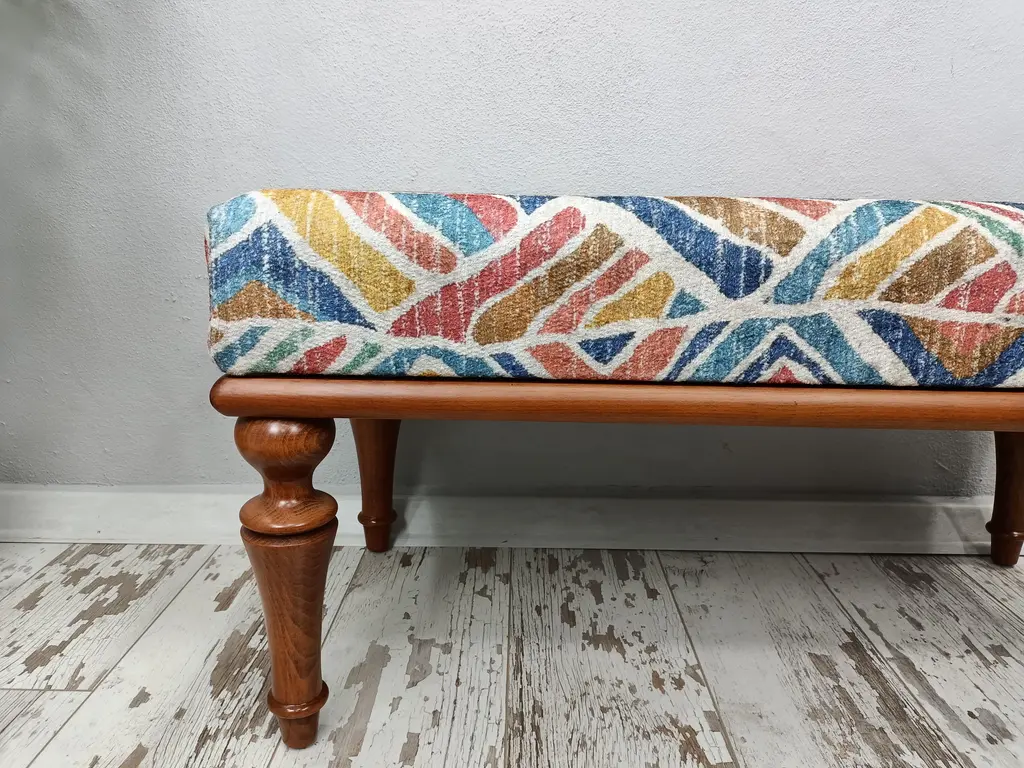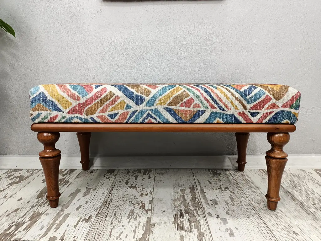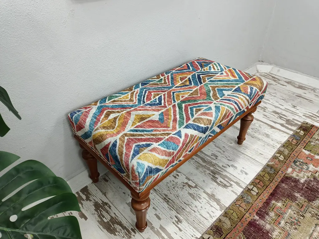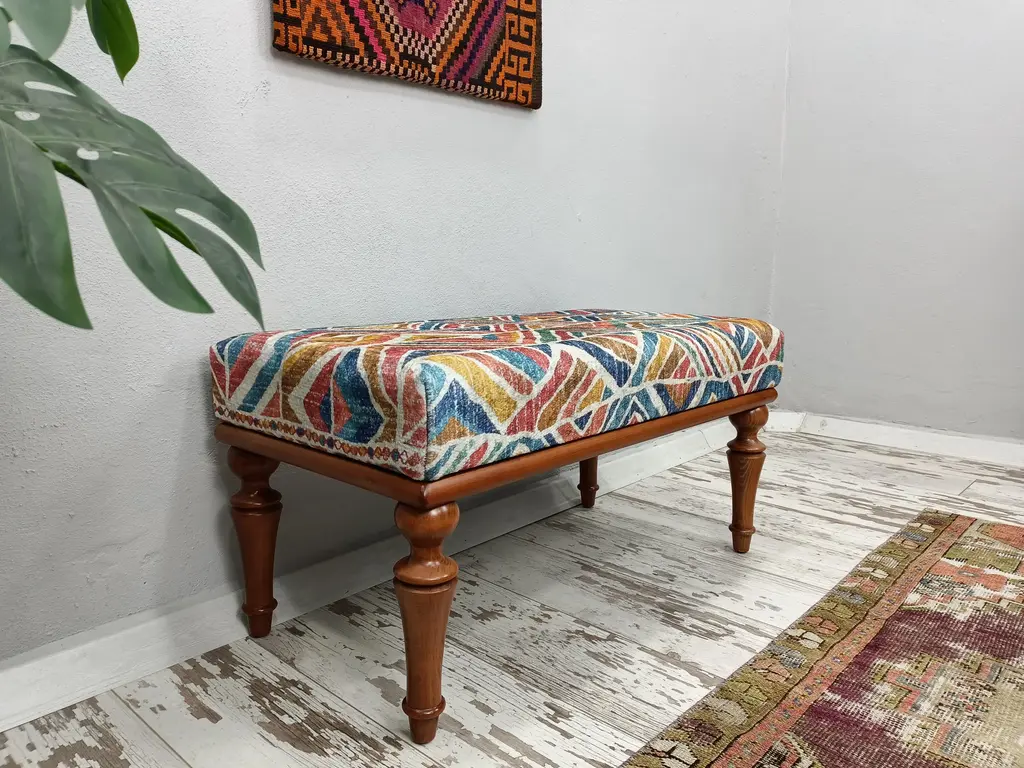 Boho Chic Rug Print Fabric Upholstered Piano Bench