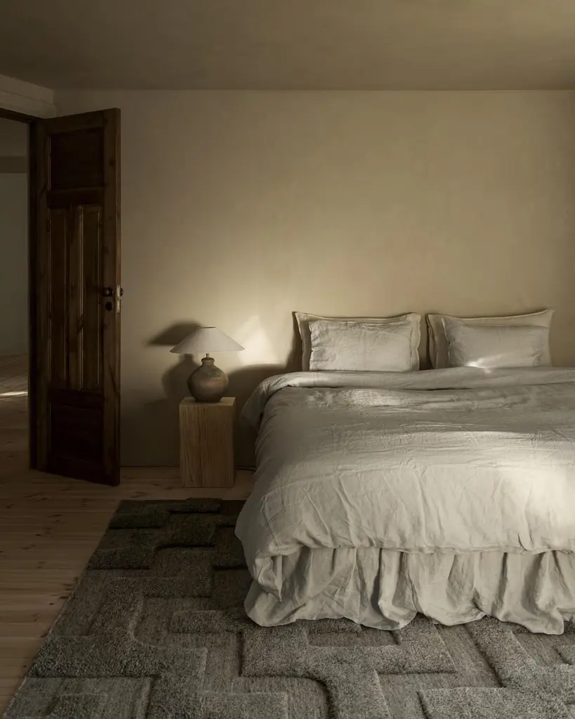 A bohemian minimalist design, where ancient textures meet modern lines. Textured to the eye, yet soft to touch. The geometric pattern is inspired by the limestone steps of the grand stairs to historic Stockholm buildings.With an all-natural, undyed European wool, no color has been used to create the pattern. Instead contrast is achieved by combining a flat-woven canvas with a plush hand-knotted pile. Knot-by-knot the rugs are made slowly — the artisan way — making the minimalist design durable to last over time with a beautifully raw bohemian aesthetic.Please note that lead times vary by size and range from 6 days - 9 weeks.