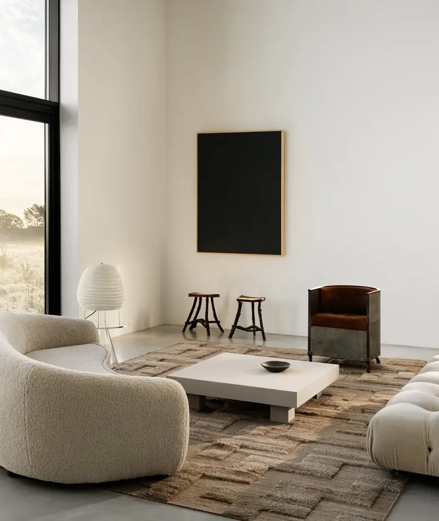 A bohemian minimalist design, where ancient textures meet modern lines. Textured to the eye, yet soft to touch. The geometric pattern is inspired by the limestone steps of the grand stairs to historic Stockholm buildings. With an all-natural, undied European wool, no color has been used to create the pattern. Instead contrast is achieved by combining a flat-woven canvas with a plush hand-knotted pile. Knot-by-knot the rugs are made slowly — the artisan way — making the minimalist design durable to last over time with a beautifully raw bohemian aesthetic.