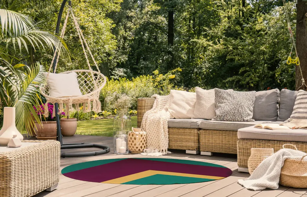 Complete your look with a Bold Blocks Indoor/outdoor Rug from our Subline Collection. Everyone will delight in the space defining design brought to your porch, patio, kitchen, or bathroom by this area rug. The artistic and colorful design is printed on a soft polyester base with a skid resistant backing, making it a perfect way to add color, flare and personality to any indoor or outdoor space. To clean, use a mild soap and lay flat to dry.