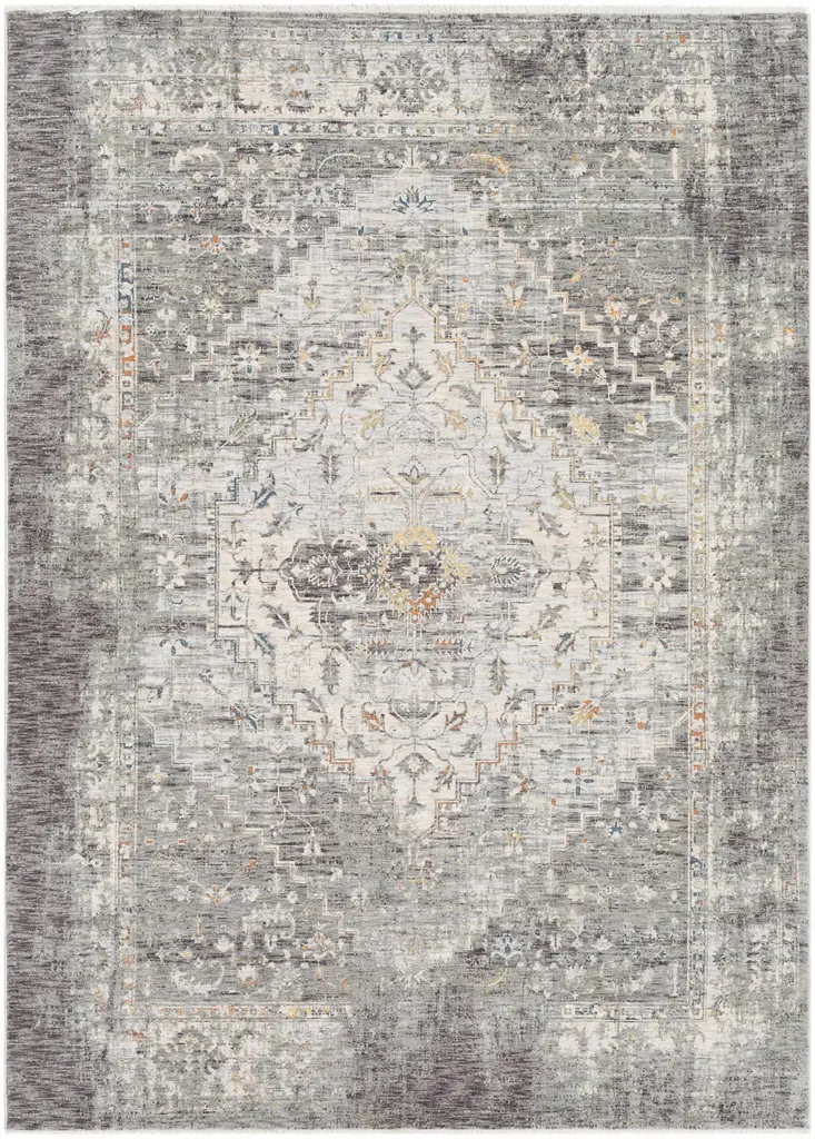 Collection: Bolivar Colors: Charcoal, Ivory, Gray, Peach, Medium Gray, Ice Blue Construction: Machine Woven Material: 100% Polyester Pile: Medium Pile Pile Height: 0.24" Styles: Traditional Made In: Turkey Thickness: 0.31" Fringe Length: 0.6" Price Range: $$$$$ (Affordable)