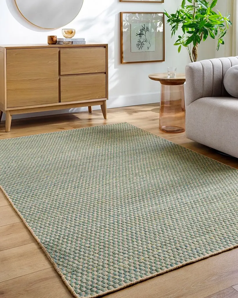 This timeless Bolt Area Rug is perfect for adding a classic touch to your home. Hand-woven in India from wool and jute, this rug features a cottage style design that adds texture and character to any space. Low profile with no pile, this rug is ideal for high-traffic areas like the entryway or living room. For best results, use with a non-slip rug pad (sold separately). Make your home cozy and inviting with this unique area rug.