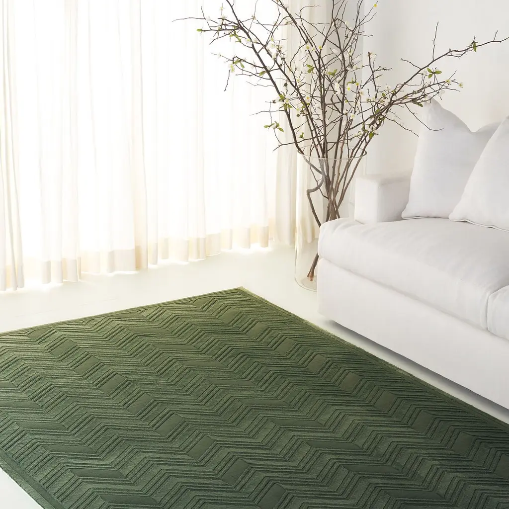 Elevate your living space with this exquisite 5' x 7' area rug, masterfully crafted in Turkey with high-quality, power-loomed polyester. Designed to bring a touch of modern elegance to any room, the rug features a chic ivory hue that exudes a warm, inviting aura. The medium rectangle shape and optimal 1/2" pile height offer the perfect balance of comfort and ease of maintenance. Highly durable and resilient, this rug is an ideal choice for high-traffic areas, retaining its beauty over time. Adorned with a striking chevron pattern, this area rug introduces a dynamic visual element that complements contemporary and minimalist decors. The subtle variations in tone produce an enchanting three-dimensional effect that adds depth and character to your flooring. Experience the perfect combination of style and functionality with this modern, Turkish-made polyester area rug, destined to become the centerpiece of your home's design.story.