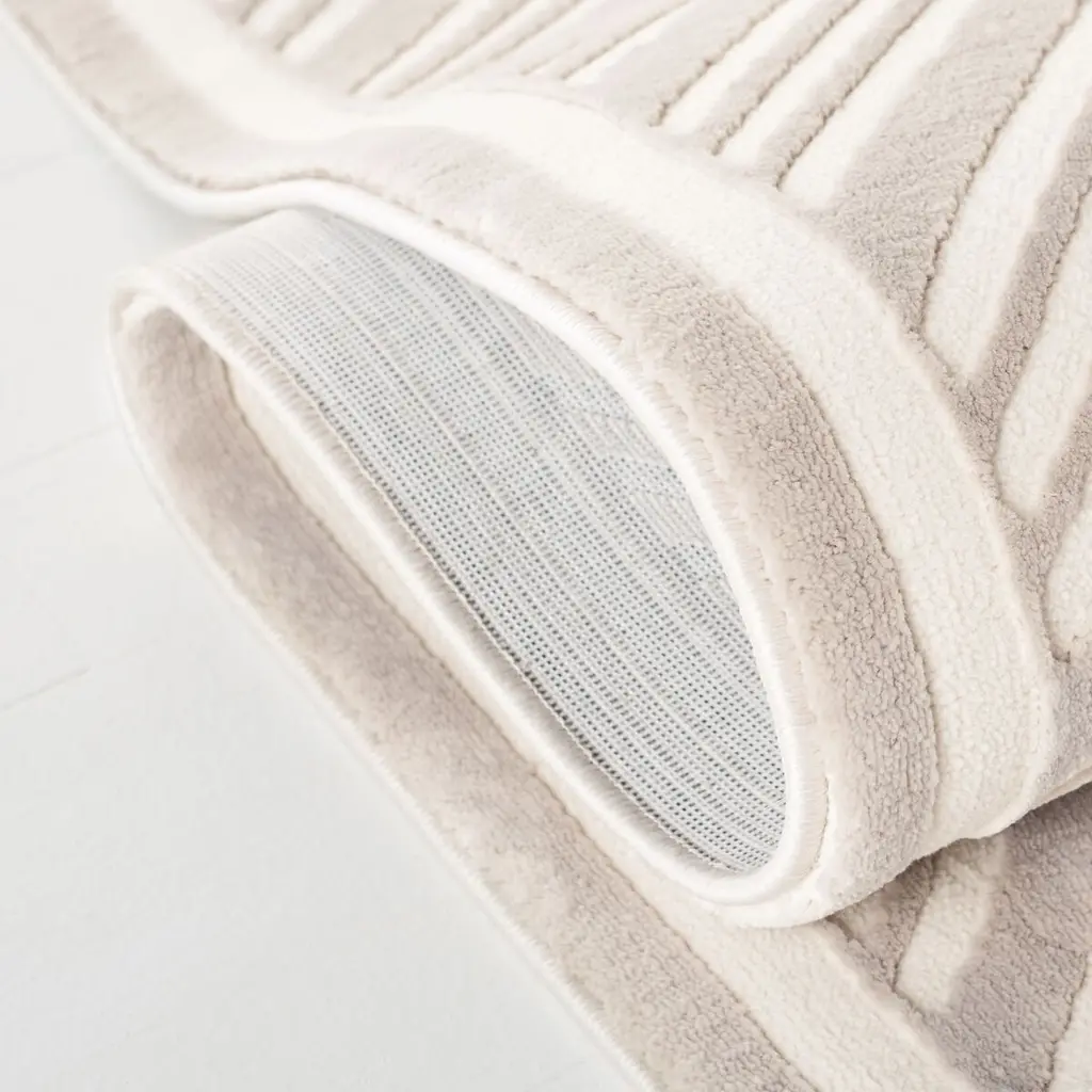 Elevate your living space with this exquisite 5' x 7' area rug, masterfully crafted in Turkey with high-quality, power-loomed polyester. Designed to bring a touch of modern elegance to any room, the rug features a chic ivory hue that exudes a warm, inviting aura. The medium rectangle shape and optimal 1/2" pile height offer the perfect balance of comfort and ease of maintenance. Highly durable and resilient, this rug is an ideal choice for high-traffic areas, retaining its beauty over time. Adorned with a striking chevron pattern, this area rug introduces a dynamic visual element that complements contemporary and minimalist decors. The subtle variations in tone produce an enchanting three-dimensional effect that adds depth and character to your flooring. Experience the perfect combination of style and functionality with this modern, Turkish-made polyester area rug, destined to become the centerpiece of your home's design.story.