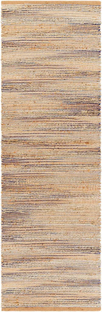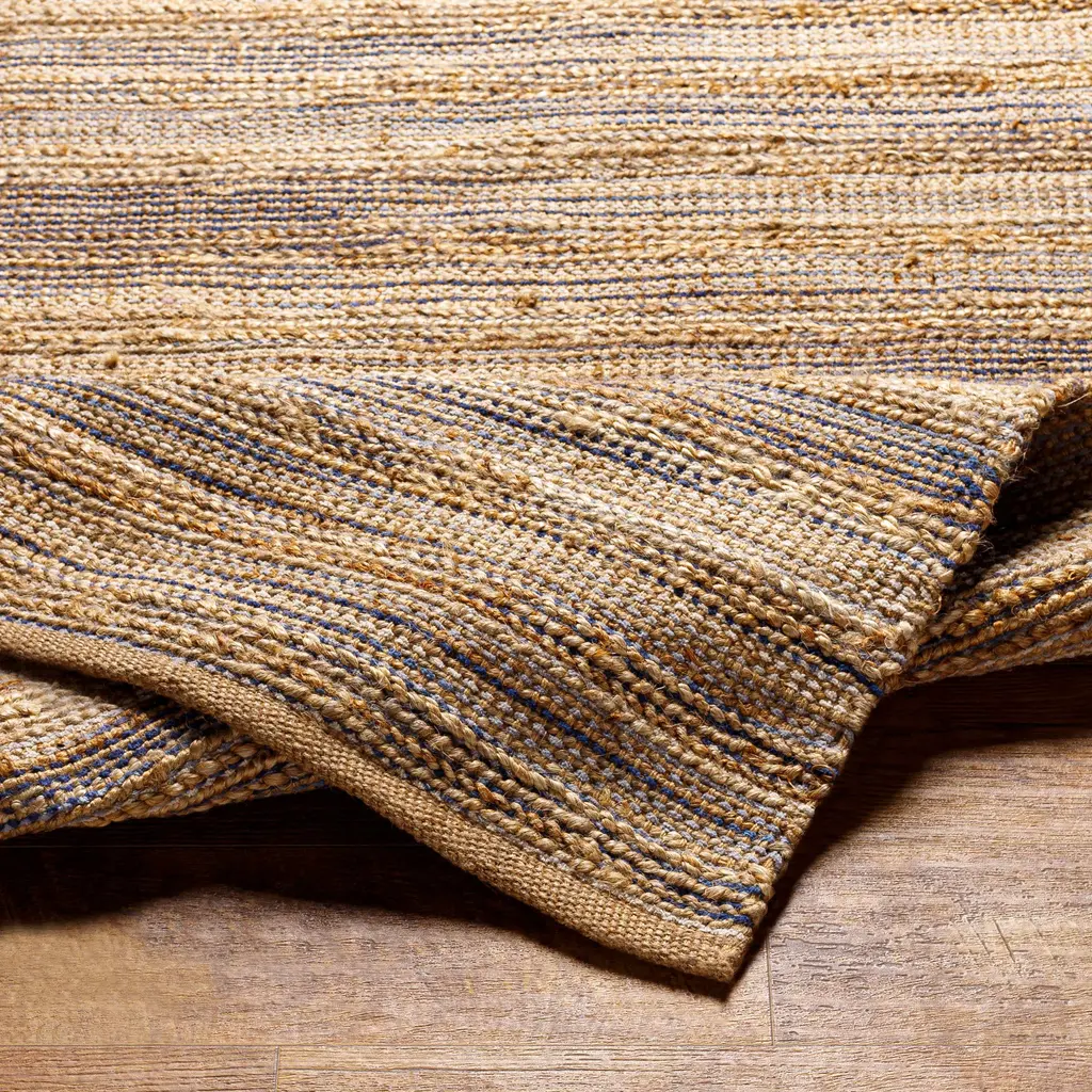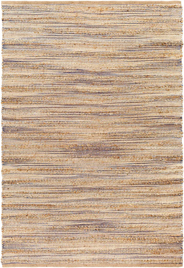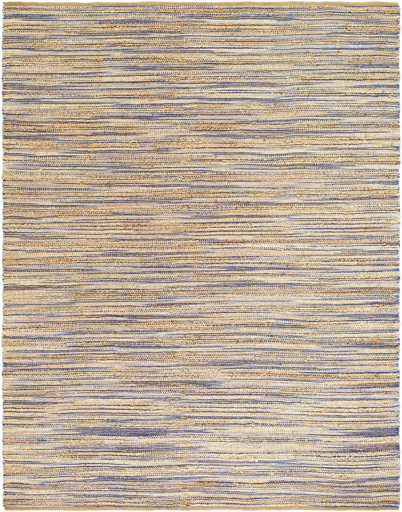 Collection: Bombon Colors: Beige, Denim, Light Gray, Blue, Tan Construction: Hand Woven Material: 70% Jute,30% Cotton Pile: No Pile Styles: Transitional,Traditional Made In: India Thickness: 0.24" Price Range: $$$$$ (Affordable)