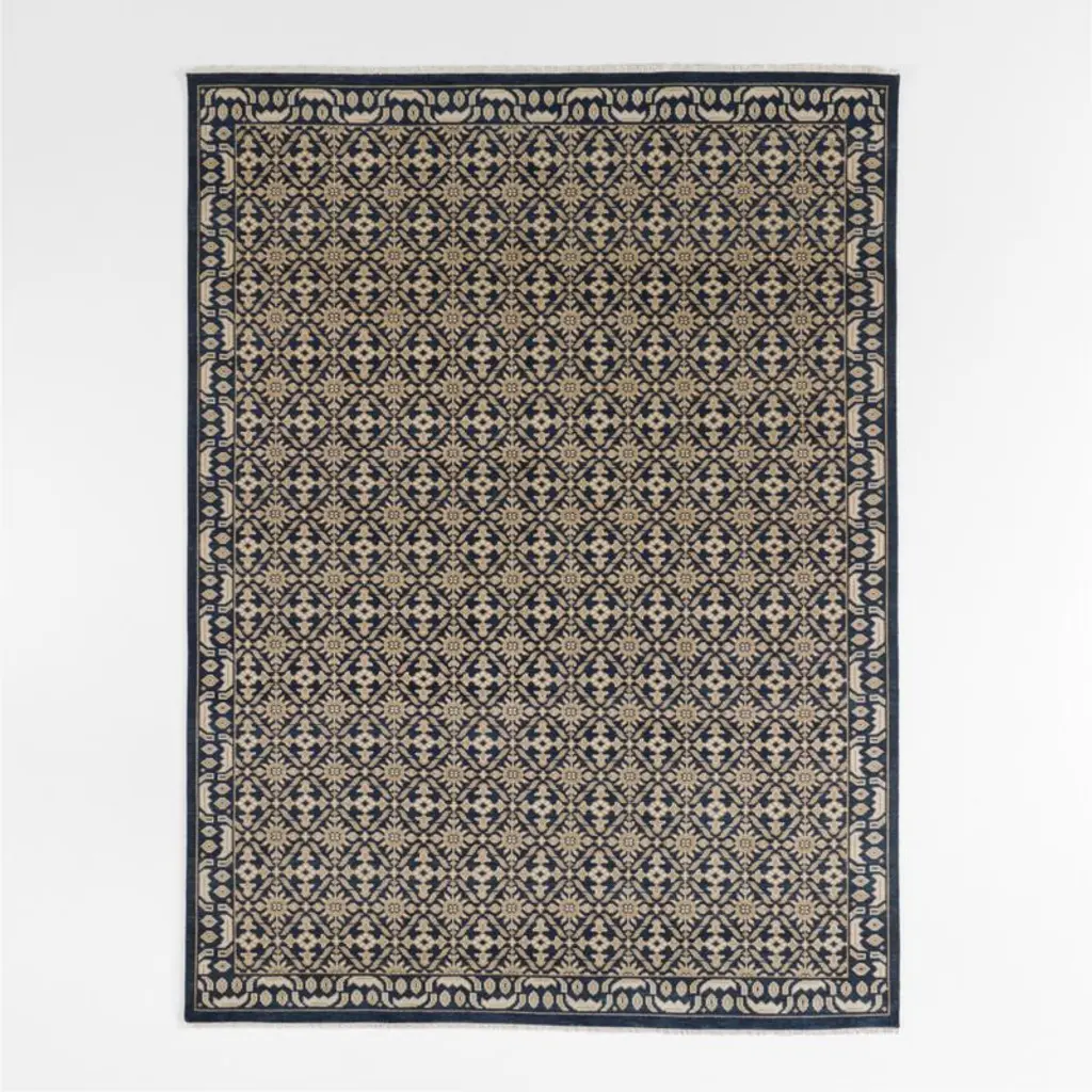 Bold botanicals entwine on our Bordeaux rug in a fascinating pattern that evokes ornate tilework. Inspired by traditional antiques, Bordeaux looks timeless in a warm, fresh palette of deepest blue, cream and tan. Talented artisans knot each one by hand, spending over 40 days to craft each exceptional floor covering. The navy rug showcases pure New Zealand wool, prized for its long, pliable fibers, lustrous sheen and incomparable softness. At home in high-traffic rooms where it can be enjoyed every day, the luxurious area rug indulges underfoot.Try it on first. Because color representation may vary by screen, using a swatch is an easy way to see exactly how your favorite rugs will look in your home. Our rug swatches ship free and can be returned online or at any store for a full refund.6'x9' rugs and 8'x10' rugs can be ordered online and picked up in a store near you. It's fast, easy and free.For larger rugs, order online and arrange a convenient delivery or warehouse pickup.