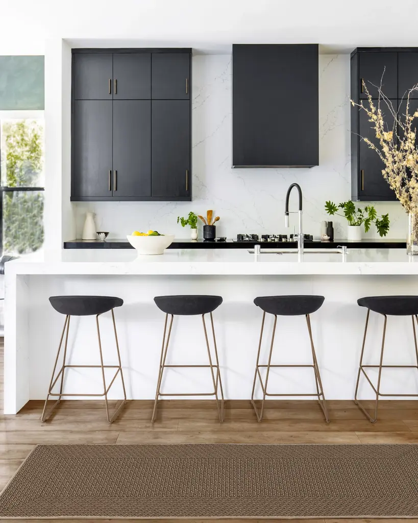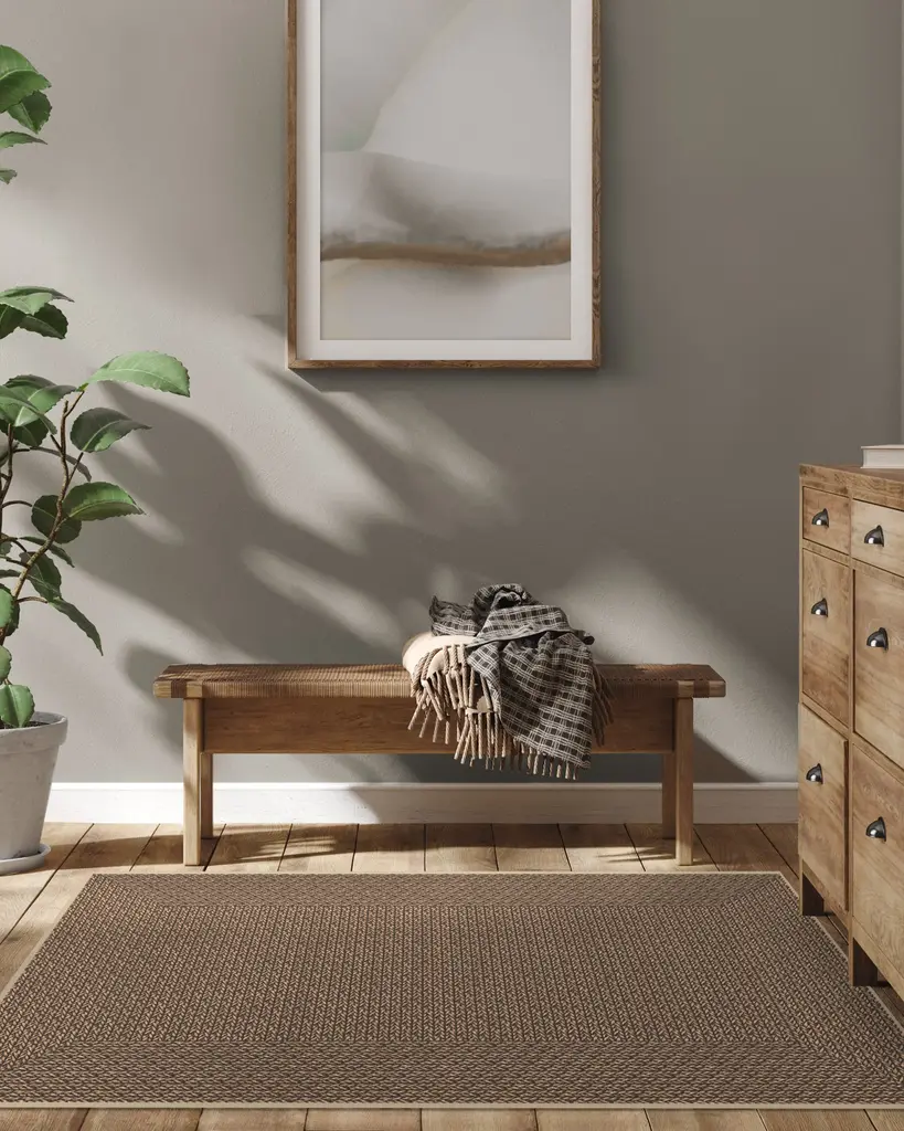 A versatile design that'll complement any decor style. This washable rug looks like a hand-braided textile in a neutral palette. The light sand and natural tan colors create a braided jute-like appearance. Made with recycled + virgin polyester, and polyurethane.