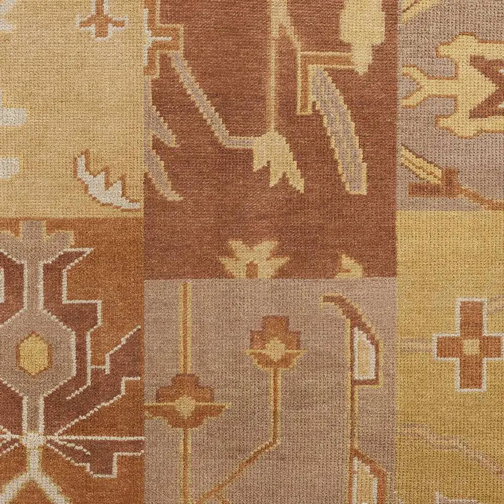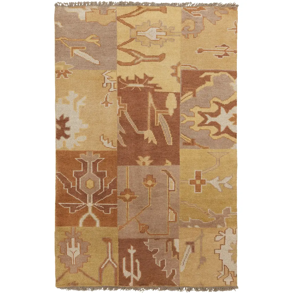 Collection: Boroughbridge Colors: Dark Brown, Light Gray, Mustard, Tan, Rust Construction: Hand Knotted Material: 100% Wool Pile: Low Pile Pile Height: 0.07" Styles: Southwestern Made In: India Thickness: 0.15" Price Range: $$$$$ (Affordable)