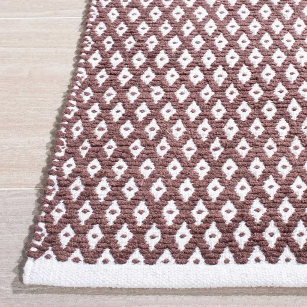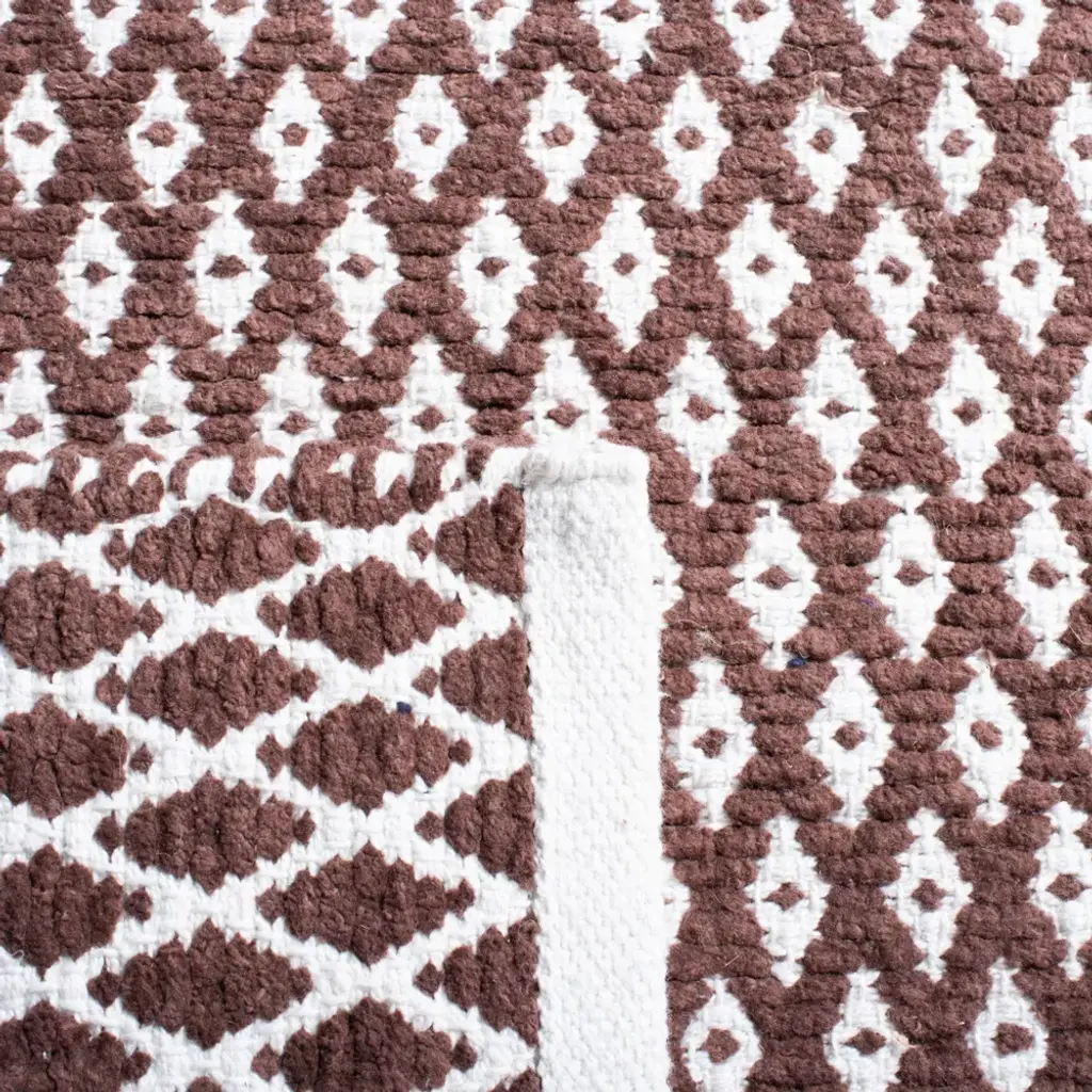 The Boston Collection of 100% pure cotton, flat weave area rugs is the perfect choice for casual interiors from coastal to country to city lofts. These hand-woven rugs display finely detailed motifs in fashion colors against a white background and finished with dainty fringes or decor-smart serged ends. Care Instructions: Vacuum Without Beater Bar