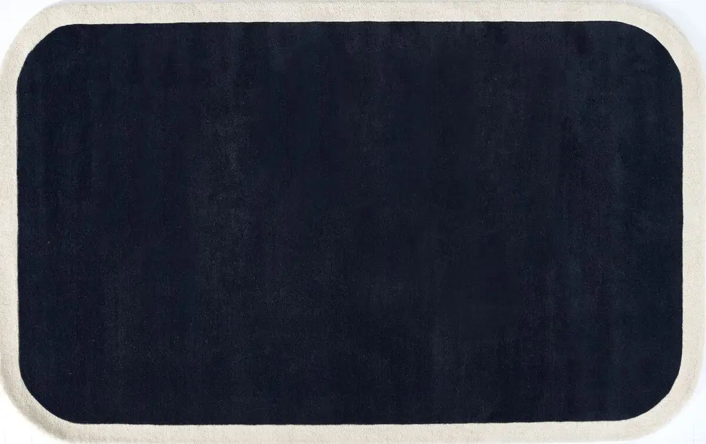 The Boswell rug offers soft impact in the room. Its solid design is set off by a high-contrast border and rounded corners for an understated yet bold foundation. This hand-tufted rug features a thick wool pile for a plush, natural texture underfoot.