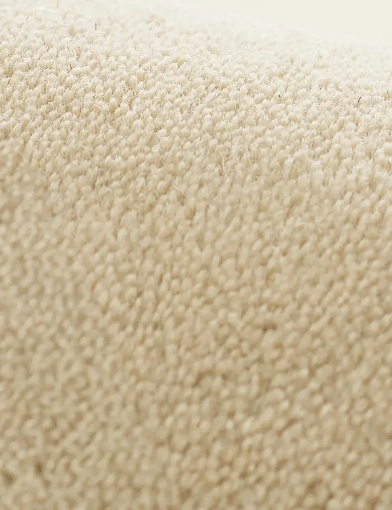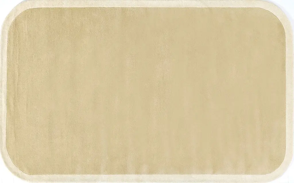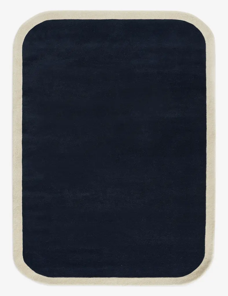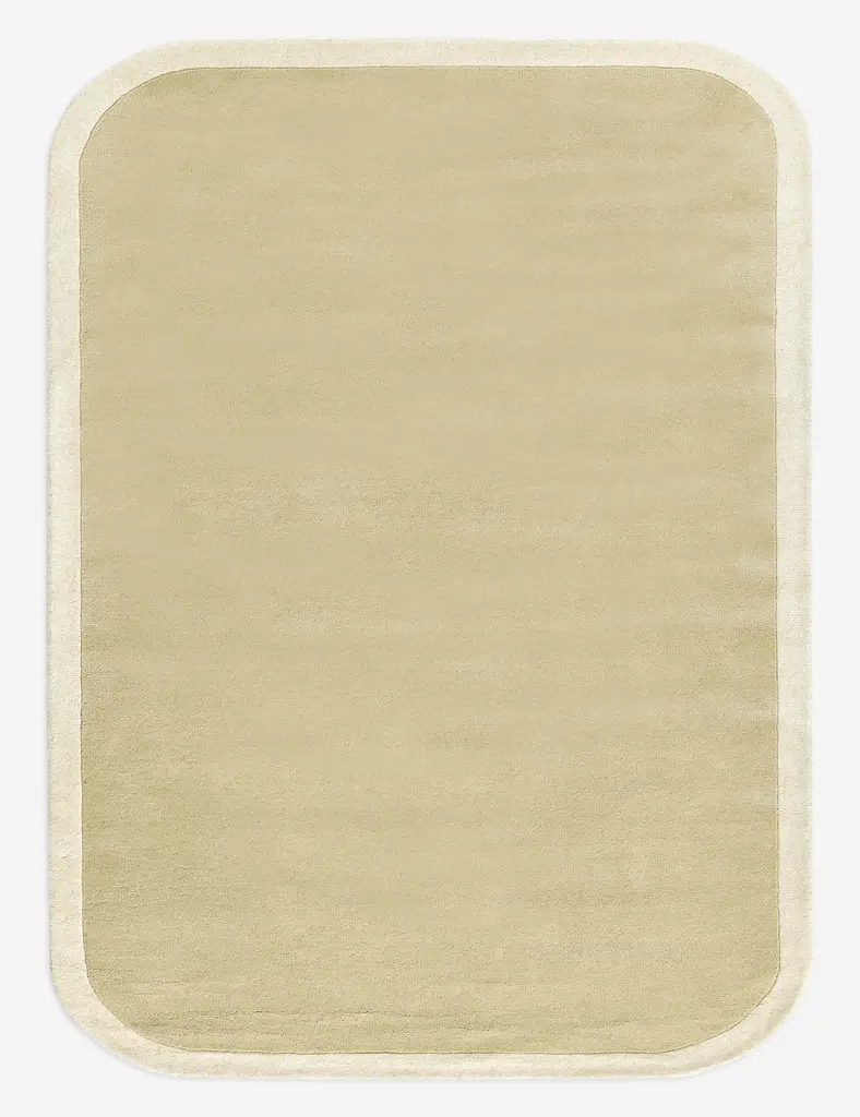 The Boswell rug offers soft impact in the room. Its solid design is set off by a high-contrast border and rounded corners for an understated yet bold foundation. This hand-tufted rug features a thick wool pile for a plush, natural texture underfoot.