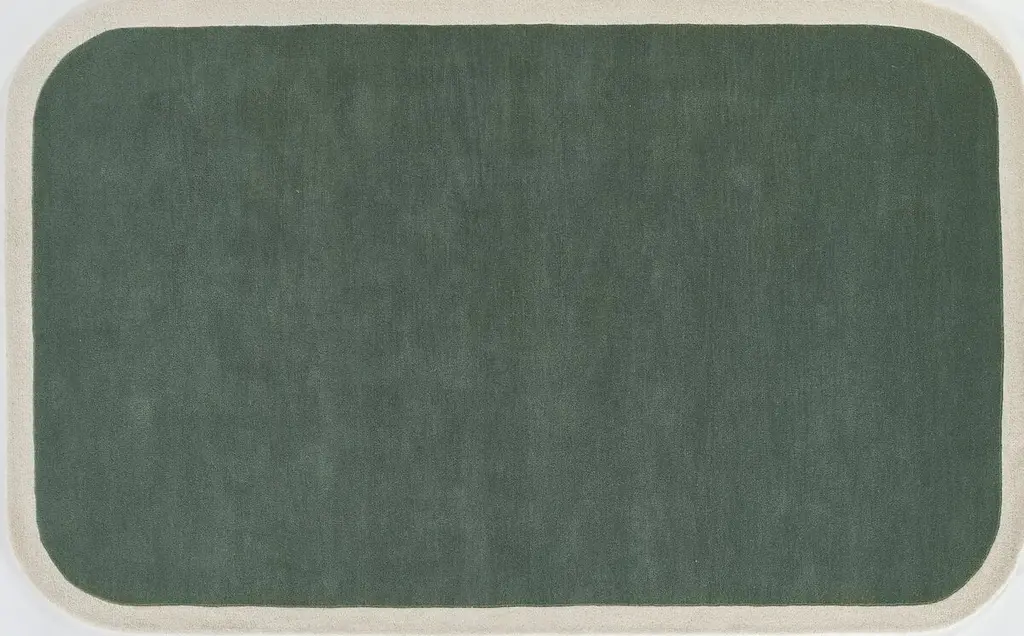 The Boswell rug offers soft impact in the room. Its solid design is set off by a high-contrast border and rounded corners for an understated yet bold foundation. This hand-tufted rug features a thick wool pile for a plush, natural texture underfoot.