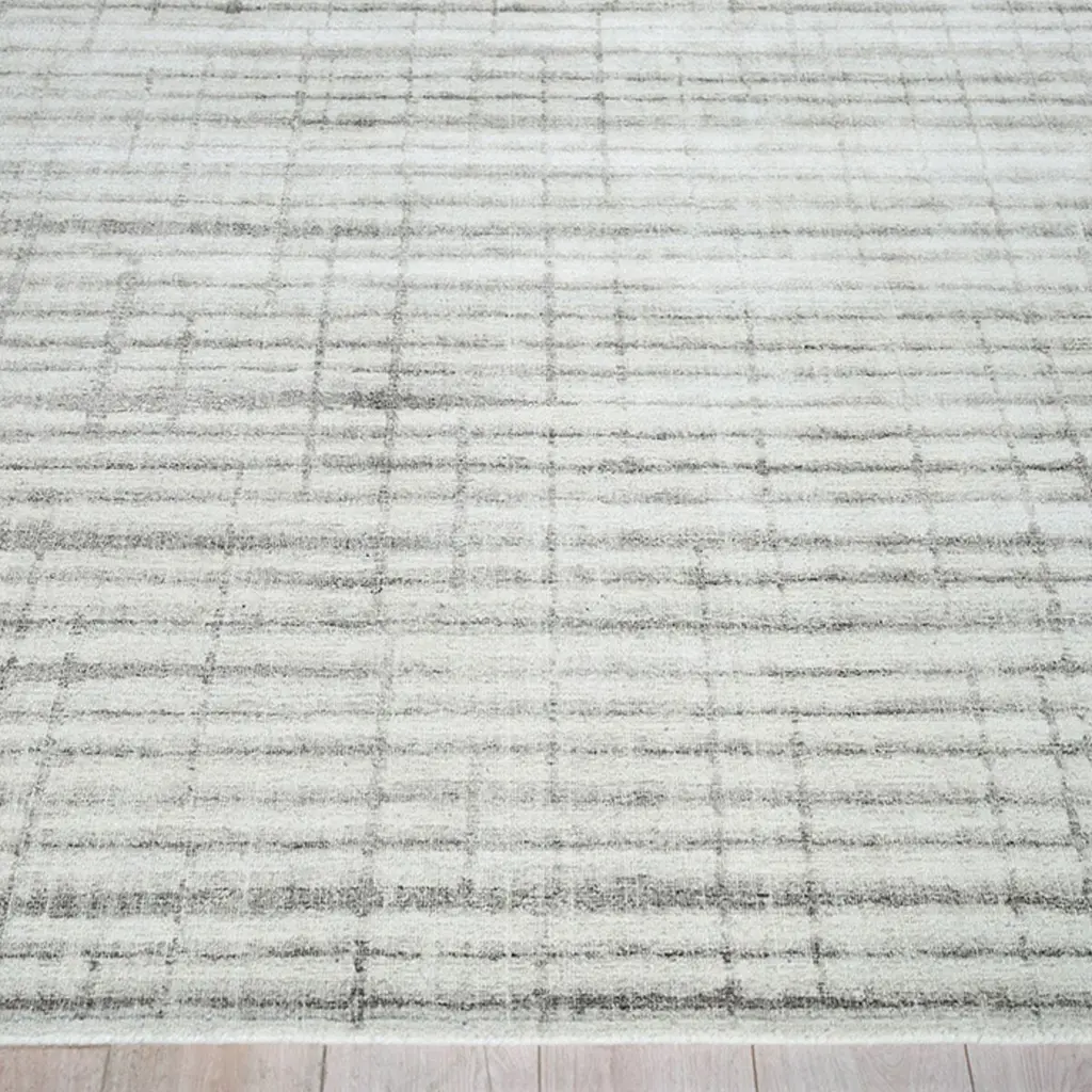A dense textured loop pile, featuring a subtle overall design of random width color bands. The soft colors are chosen to complement the pattern, adding a luxurious and sophisticated touch to any space. The simplicity of the all-over pattern enhances its elegance, making it a perfect addition to your decor.