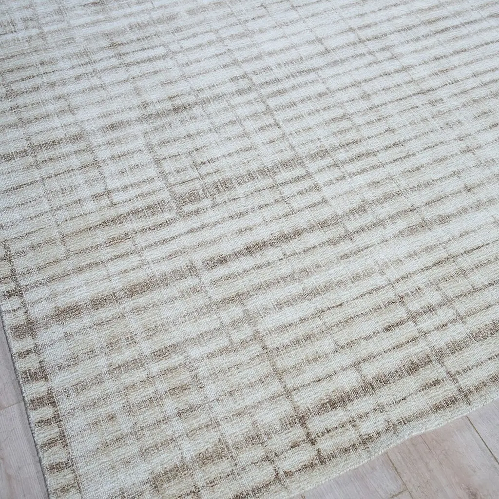 A dense textured loop pile, featuring a subtle overall design of random width color bands. The soft colors are chosen to complement the pattern, adding a luxurious and sophisticated touch to any space. The simplicity of the all-over pattern enhances its elegance, making it a perfect addition to your decor.