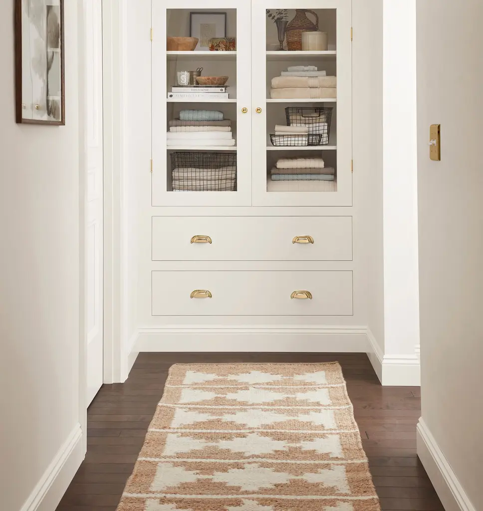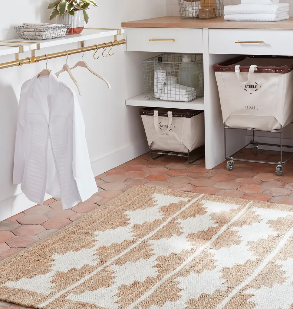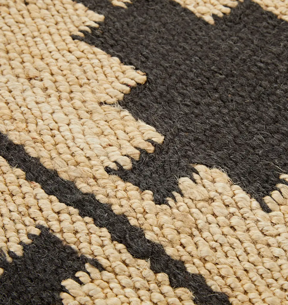 With a combination of durable jute and wool, this geometric rug offers a modern option that will stand the test of time. The versatile geometric pattern adds a dose of subtle personality, while the neutral hue keeps it versatile for any space. Details You'll Appreciate Jute fiber makes this rug perfect for high traffic areas Extended runner sizes to fit long hallways and stairs Reversible Crafted 100% by hand using a flatweave technique Product Specifications 77% jute, 23% wool Thickness: 5/8" Scale of motifs, pattern, and borders will adapt according to rug size Corner swatch represents 8" x 10" motif Use of a rug pad is recommended Made in India Care Instructions Shedding of loose fibers is normal with new wool rugs and a natural result of being handcrafted. Shedding will diminish with regular vacuuming, usually after 3-6 months. Vacuum regularly on a low-power setting to prevent debris from settling into roots of the fibers. Use a vacuum cleaner without a beater brush as it may cause damage to the pile. Avoid direct and continuous exposure to sunlight. Do not pull loose ends. Clip them with scissors. Rotate rug occasionally to equalize wear. Remove spills immediately. If liquid, blot with clean, undyed cloth by pressing firmly around spill to absorb as much as possible. For hard-to-remove stains, professional rug cleaning is recommended.
