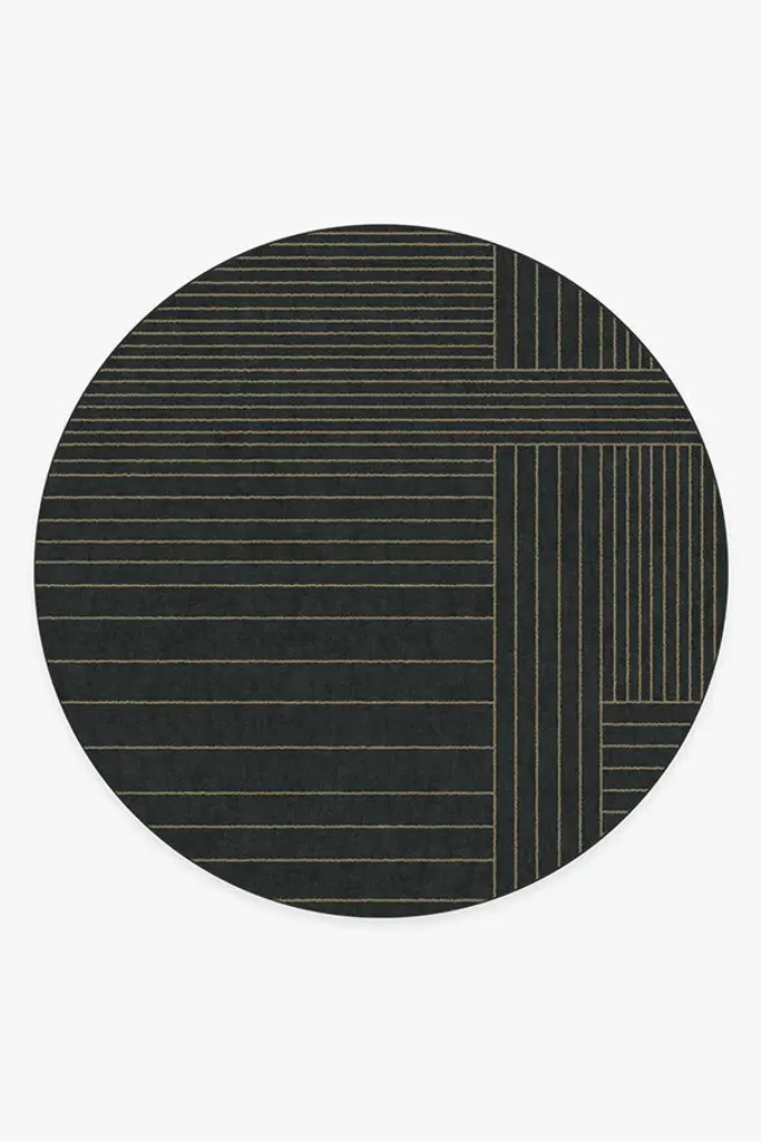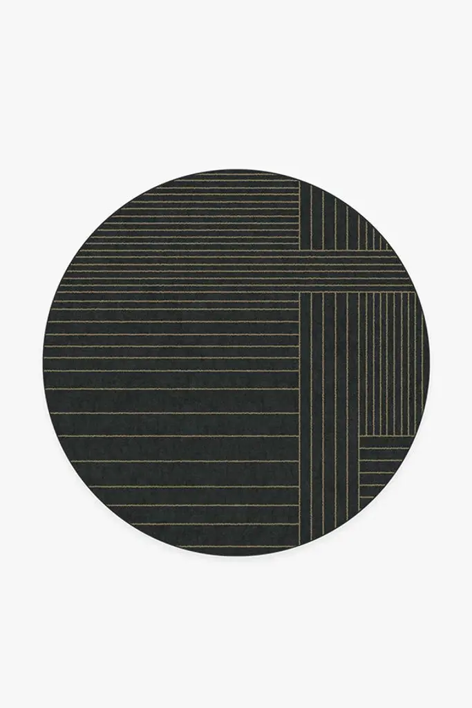 Washable vibes only. Our Bowie Charcoal Rug gives rich, black lines a sophisticated edge as they fold over and under one another, creating a masculine retro energy. Water-resistant, stain-resistant, and machine-washable. Rug colors may vary slightly according to your device and the lighting in your space.